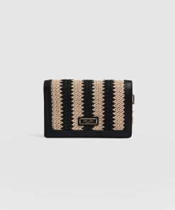 Saint + Sofia Women’s Bags Primrose Wallet On Chain – Beige/black Raffia | Beige & Black Raffia
