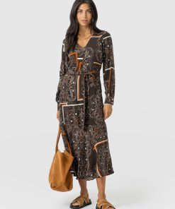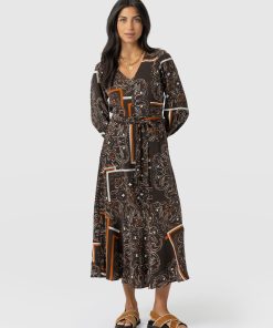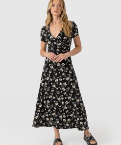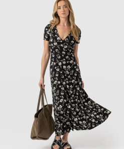 Saint + Sofia Women’s Maggie Wrap Short Sleeve Midi Dress- Black Spring Floral | Black Spring Floral