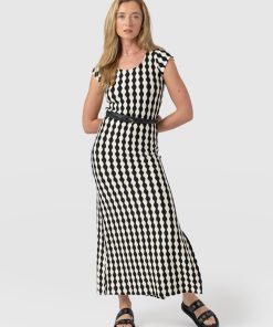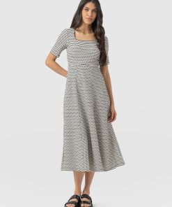 Saint + Sofia Women’s Darcey Short Sleeve Flared Dress – Monochrome Jacquard | Monochrome Jacquard