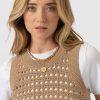 Built for layering, the Adler Sleeveless Knit in camel is perfect for those transitional months. It’s woven to an open-knit that creates a lace hole mesh texture and is cut to a sleeveless silhouette to leave the arms of your undershirt on show. Style yours with a white button-up and a pair of Maeva Skinny jeans, and let the ribbed hem cinch your waist.