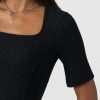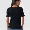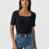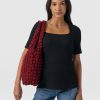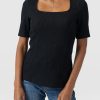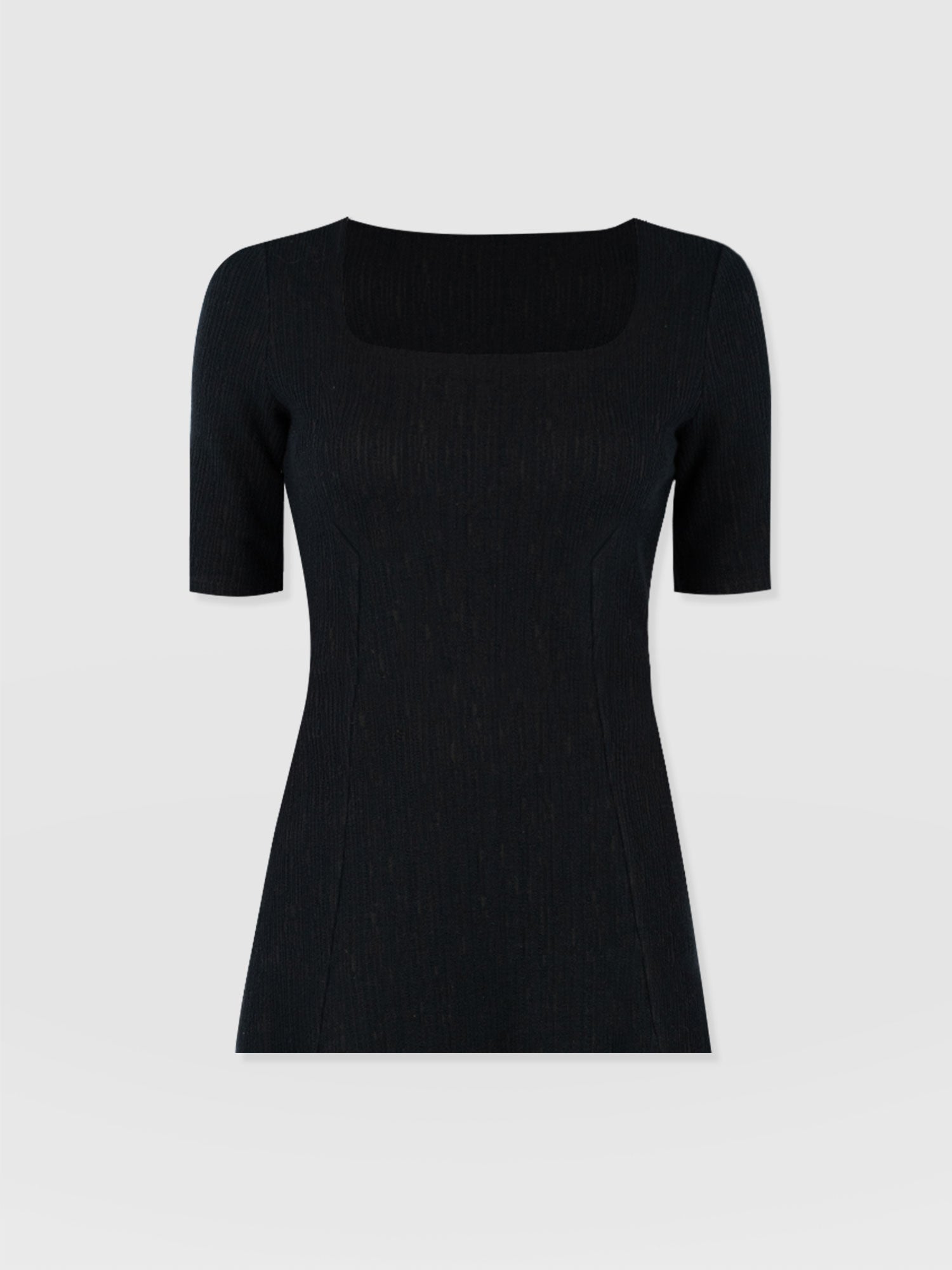 Handmade using stretch-infused organic cotton, the Akia Short Sleeve Tee in black is the perfect elevated basic to add to your wardrobe. It’s stitched to a slim-fitting silhouette with a square neckline and short sleeves. But for added interest, the entire bodice is lightly textured with subtle details. Wear yours with skirts, pants, or your favourite jeans and dress up with heels when you’re heading out under the moonlight.