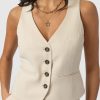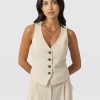 The perfect blend of workwear with off-duty style, the Astrid Waistcoat in cream is a wardrobe must-have. It’s made from a linen-effect crepe and features a V-neckline with branded buttons at the front. Wear it alone for a cosmopolitan look, or style it over our Easy Tee in black for something more casual.