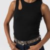 A classic crew-neck vest with a touch of interest. The Axel Vest in black offers a playful take on everyday layering; it’s handmade from stretch-infused organic cotton and lightly textured with a ribbed finish. But the best part? The teardrop-shaped cut-out at the neckline which leaves a hint of skin on show. Style yours with your favourite jeans and layer under a shirt for a chic look.