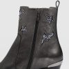 Stride with confidence and stomp with a rock-and-roll edge in our new Billie Rock Boots. This statement pair is masterfully sculpted by hand using Portuguese leather and decorated with glitter-embellished stars and lightning bolts for a glimmering edge. Then, to amp up the shine, it’s dusted in a metallic coating that’s designed to uniquely age as you wear them to create a truly vintage leather finish.
