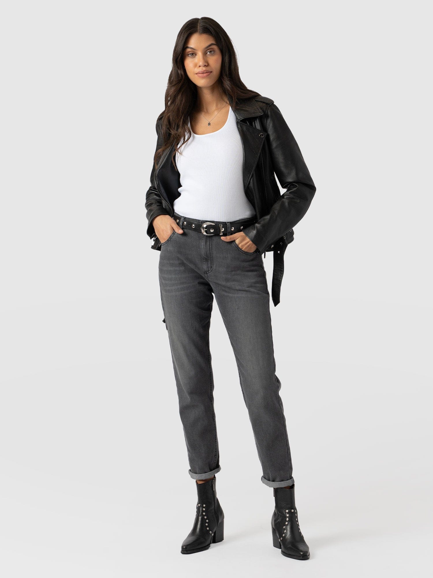 This classic Boyfriend cut jeans features a low rise and slim, cropped leg in a faded black wash. Instantly comfortable and designed for a perfect fit, they’re handmade by skilled artisans with recycled denim for a planet-friendly finish. Branded buttons and a tab with an adjuster on the back add extra detail, while the subtle Saint and Sofia embroidery on the pocket adds a touch of sophistication. Style with a rolled-up leg and a Cavendish Square Neck Tee for the ultimate laid-back look.