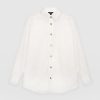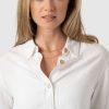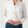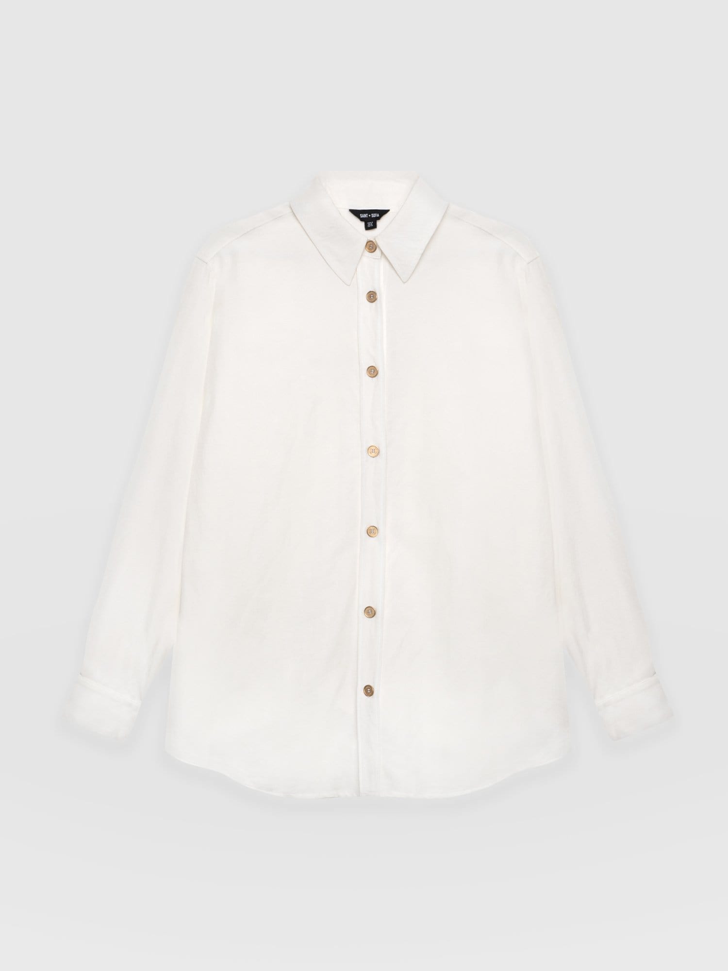A classic boyfriend shirt in white made with the softest blend of Tencel, cotton and linen. We designed this shirt style with a classic collar neckline and gold button-up detailing. It has a soft and smooth hand-feel and a relaxed, loose fit. Designed in our London studios and handmade in Europe for the perfect fit and feel. Wear open over a cami and jeans or casually with the sleeves rolled up and layered under a knitted vest.