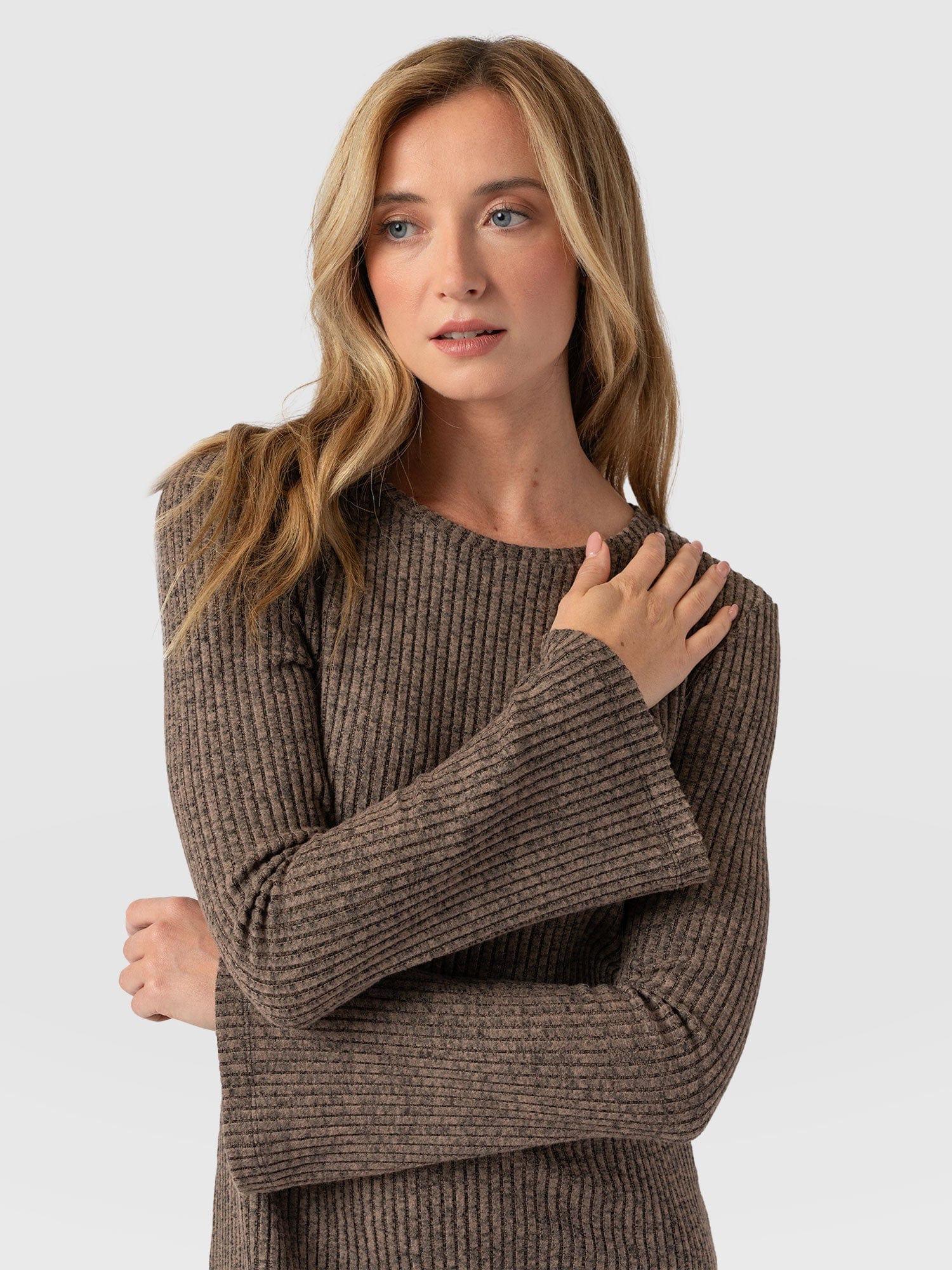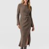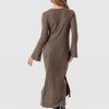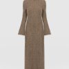 A fusion of elegant aesthetics with cosy knitwear, the Callie Midi Dress in beigeis masterfully hand-finished using a stretch-infused knit and textured with a lightweight rib. Designed to fall beautifully over your frame, it’s topped by a classic crew neckline with a breezy midi skirt that enhances your silhouette. As for the sleeves, their fluted design adds a bohemian finish to this statement style.