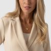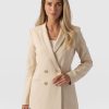 Elevate your wardrobe with the Cambridge Blazer in beige, a beautifully tailored double-breasted jacket set to become one of your wardrobe essentials. This blazer features lightly padded shoulders and brushed-gold buttons, adding sophistication to any look. Wear it with the matching Cambridge Wide Leg Pants for a coordinated aesthetic or as a stand-alone piece with sneakers and jeans for a more casual vibe.