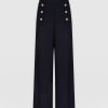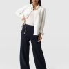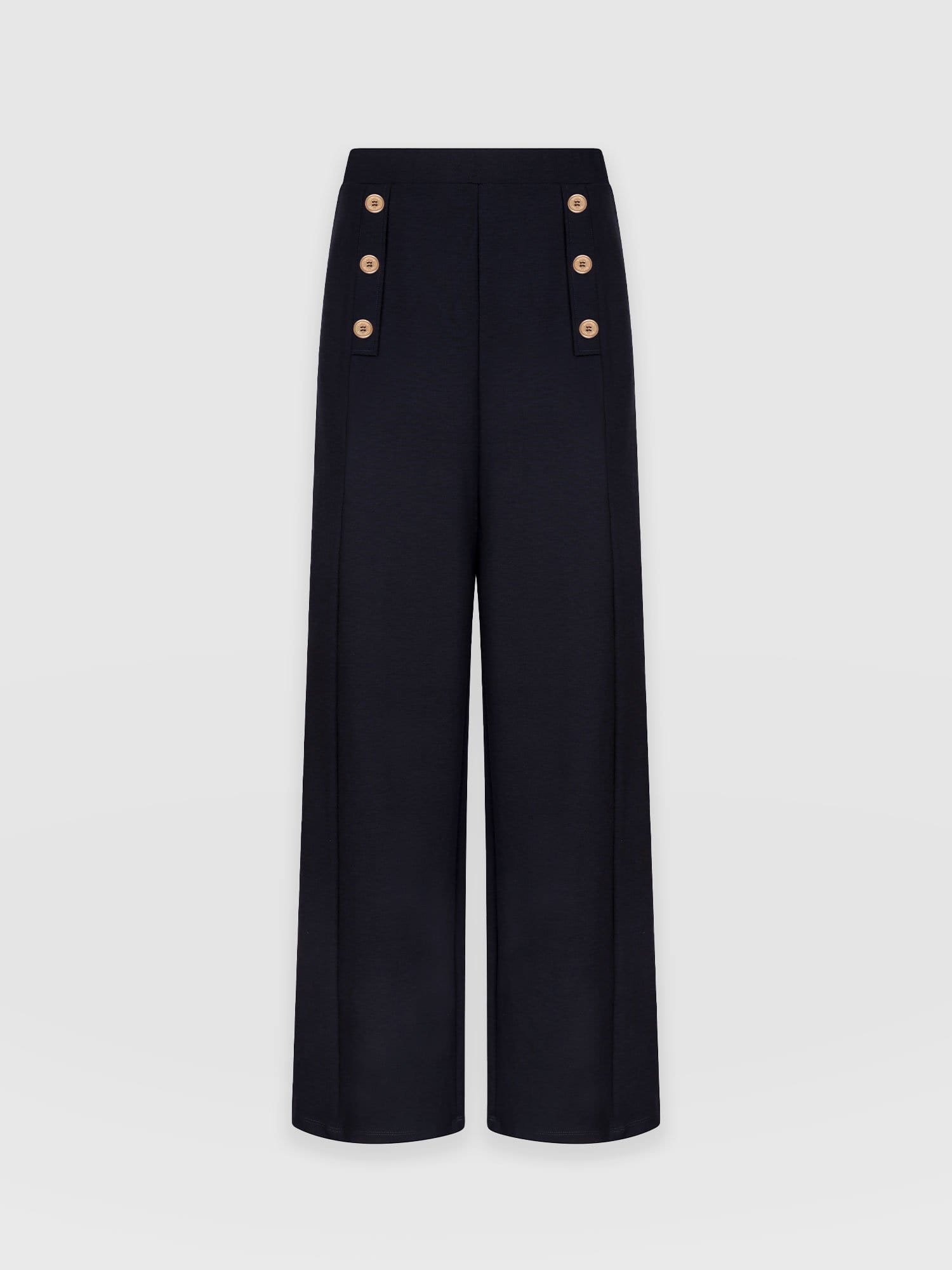 A classic wide leg pant style, made with the softest Ponte di Roma fabric from Italy and gold button detail. High-waisted, comfortable and relaxed with an elasticated waistband finish and pull-on construction. We love the soft Ponte di Roma fabric because its wrinkle and crease free with a beautiful drape. Each style is handmade in our studios with discrete stitching. Perfect for work or weekends, style up with heels or down with sneakers or sandals.