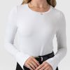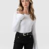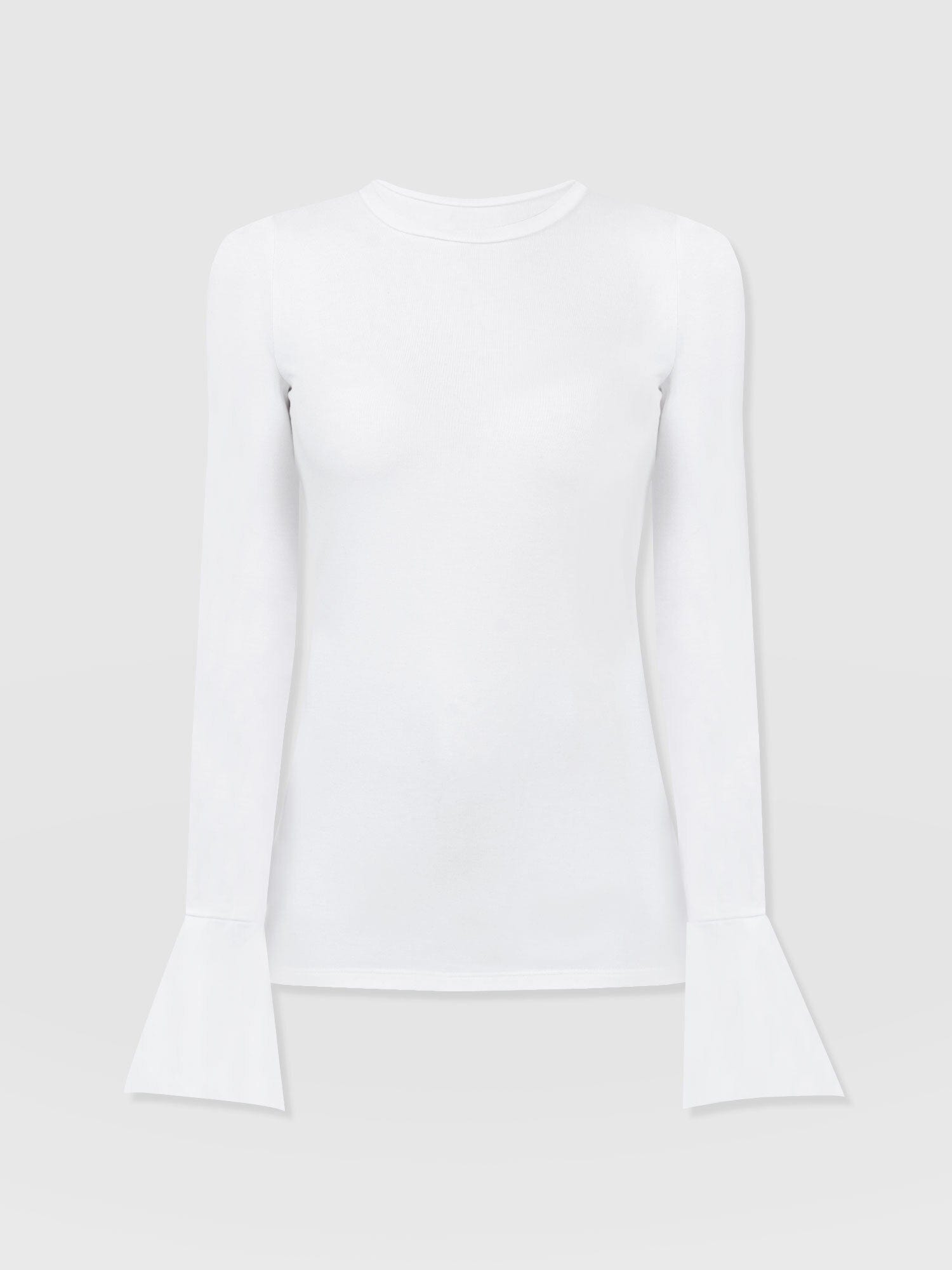 Designing with layering in mind, we created the Connie Cuff Tee in white. This long-sleeved piece is handmade from a stretch-infused jersey that skims close to your frame to allow for easy stacking. But the real star of the show? The flared cuffs with branded buttons that work to create the illusion of a shirt when worn under knitwear. Use this style to add a touch of quiet elegance to your winter layers.