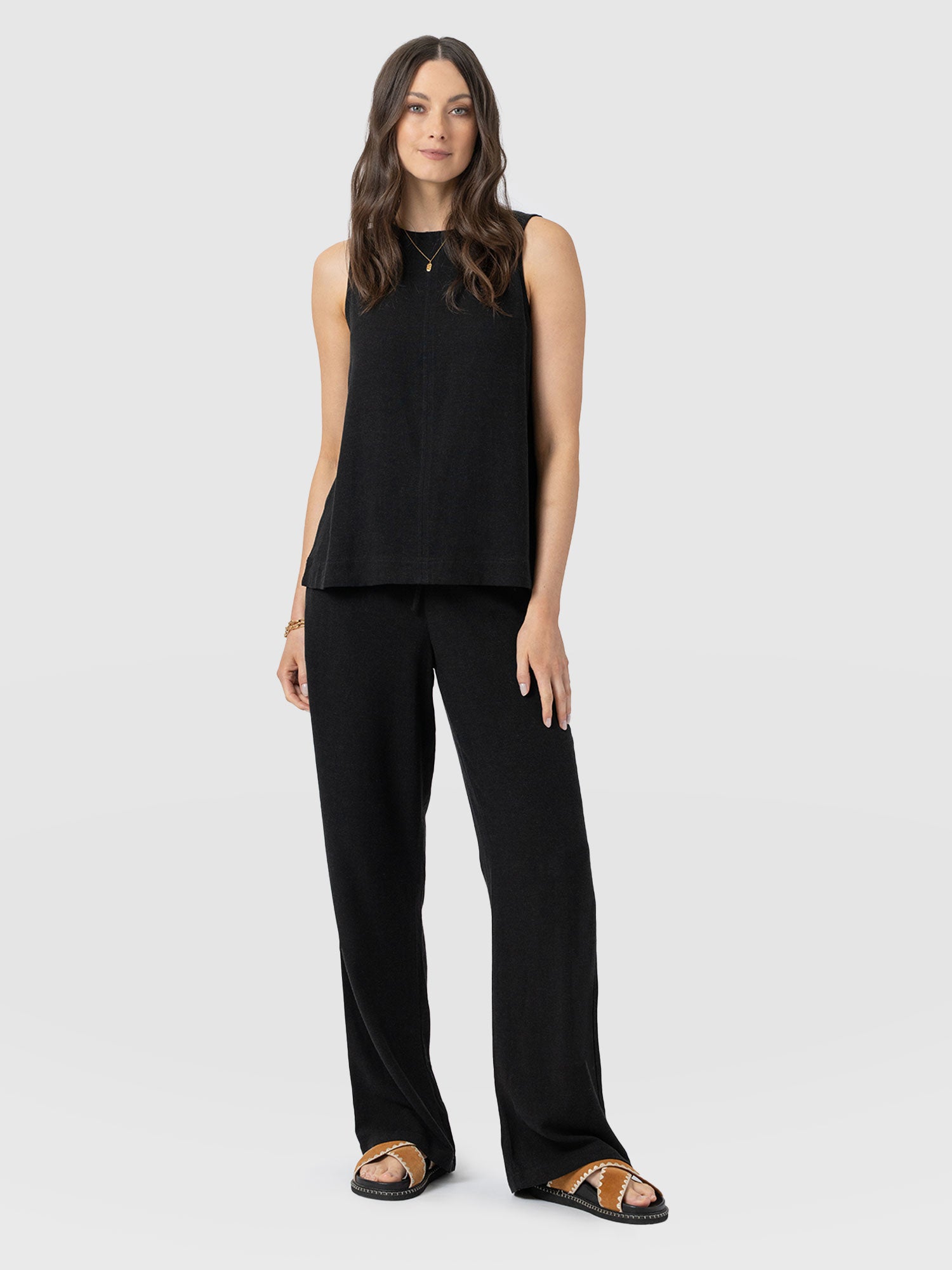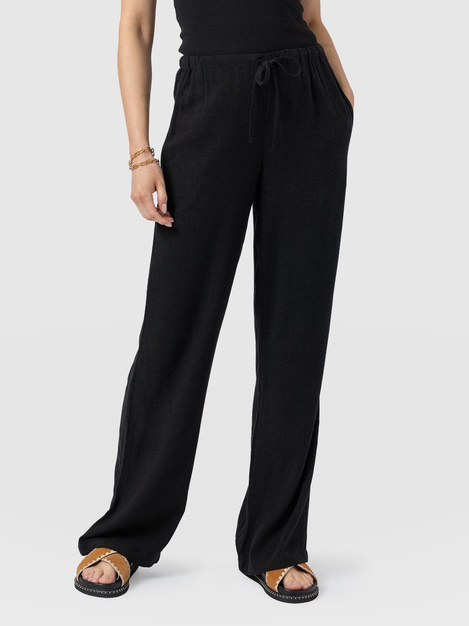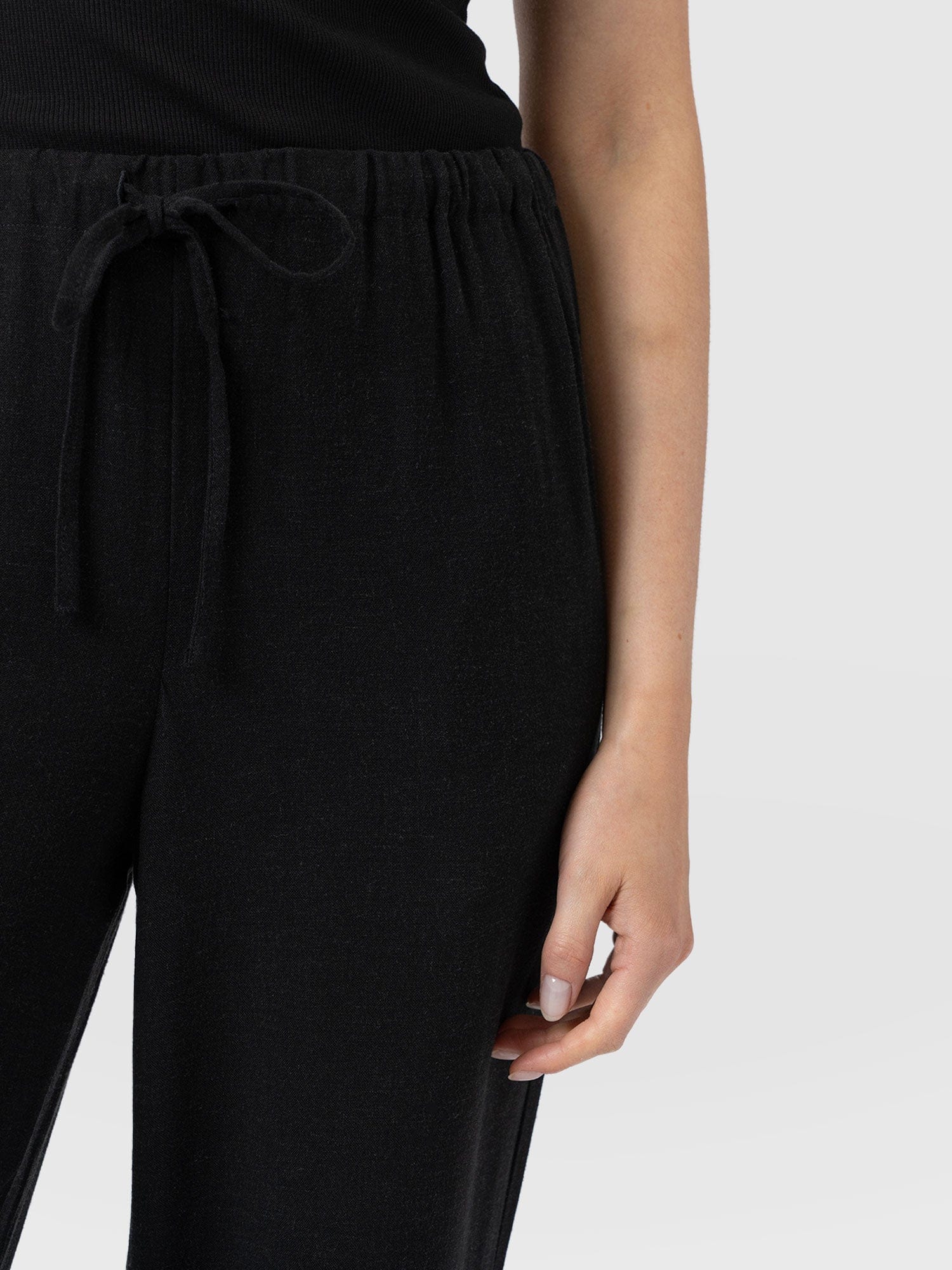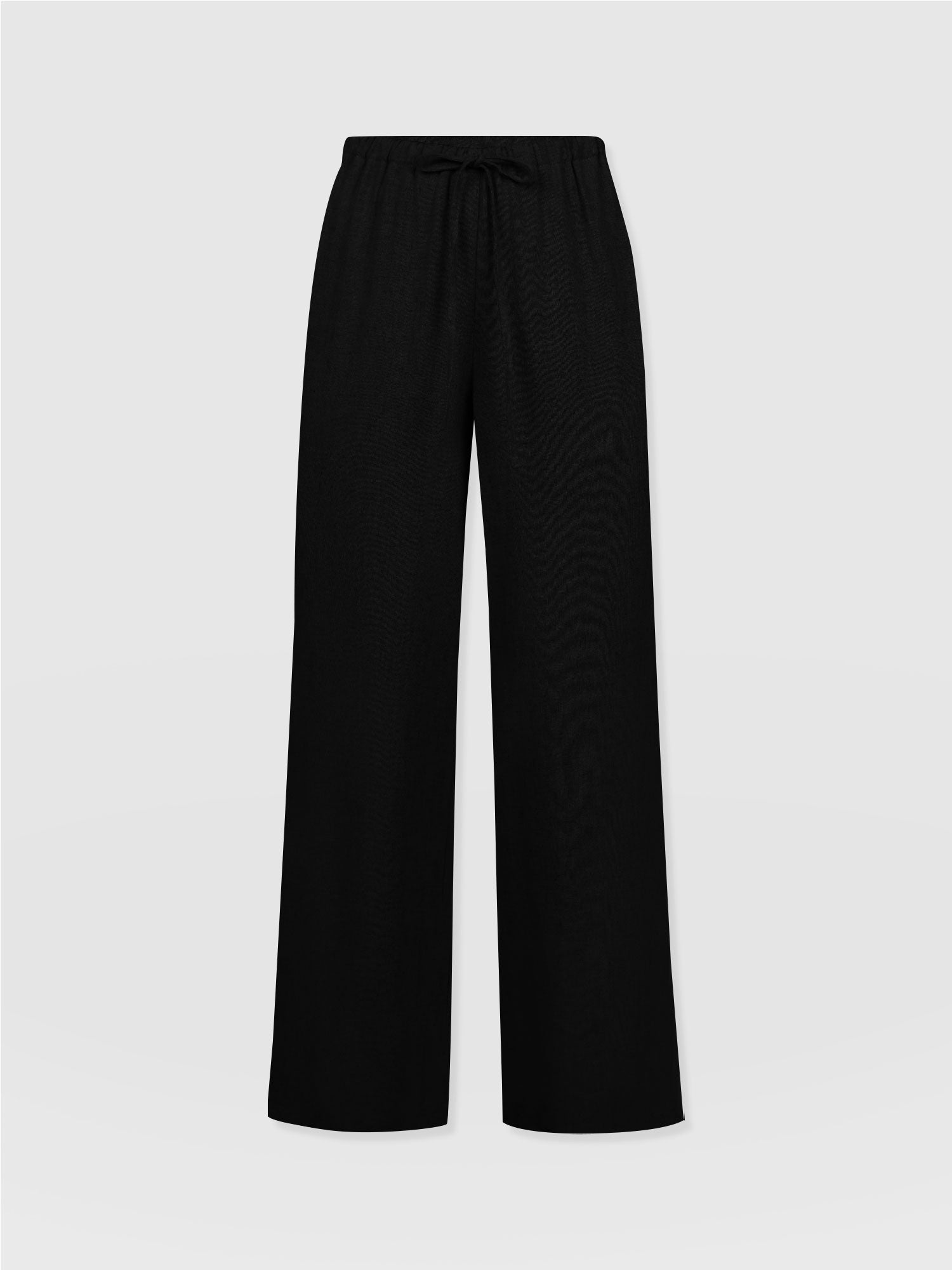The Corinne Pant in black is a lightweight linen-blend design shaped to a wide-leg silhouette and topped by an adjustable drawcord waistband. Designed with warmer weather and beachside getaways in mind, they’re perfect for keeping you cool when the sun starts shining. Each pair is finished by hand to ensure the highest quality finish and can be styled with the matching shirt or tunic top to create a resort-inspired co-ord.