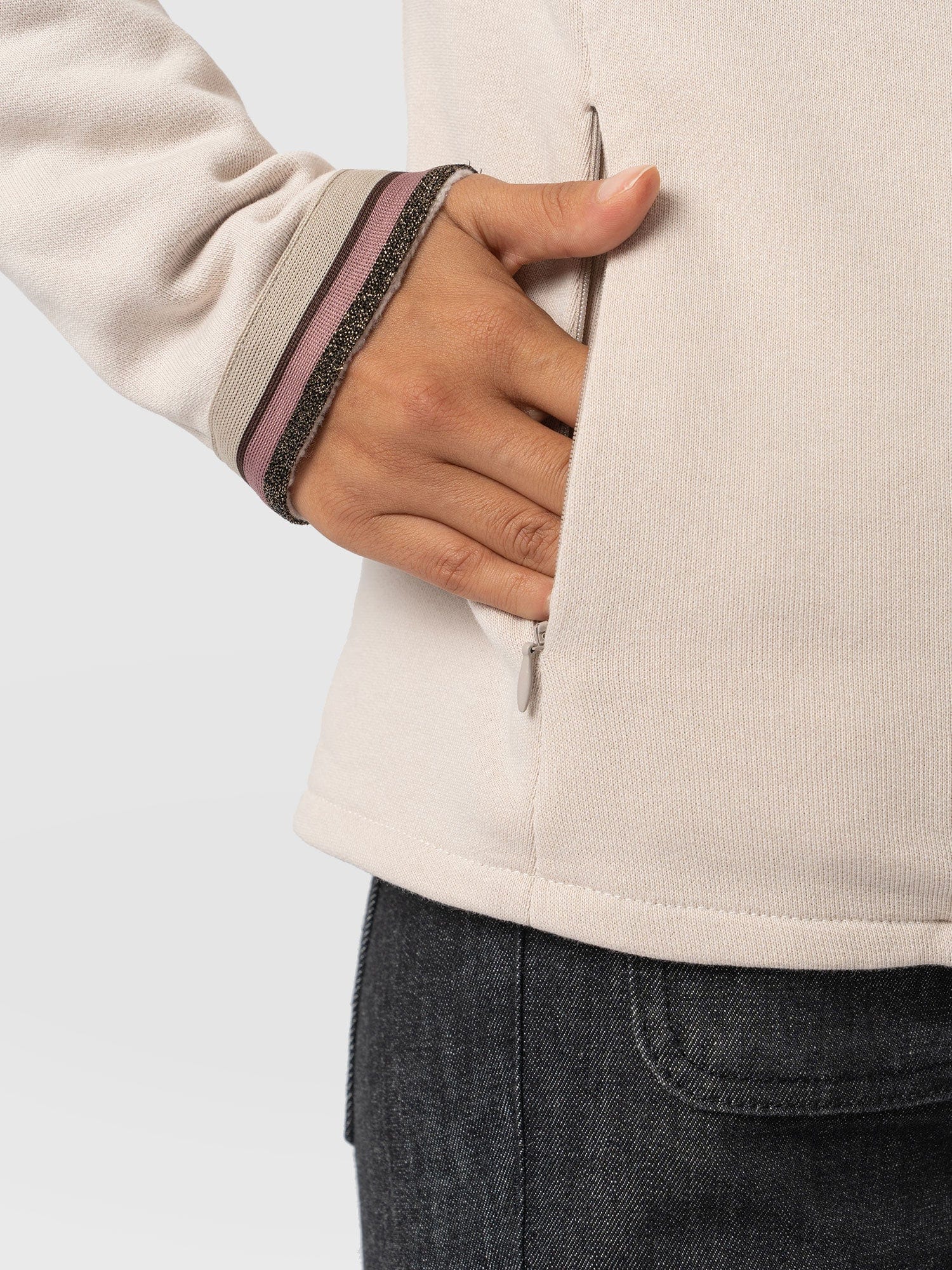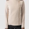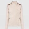 Saint + Sofia Women’s Cotton Biker Jacket – Light Beige – Gold Lurex Stripe | Light Beige – Gold Lurex Stripe