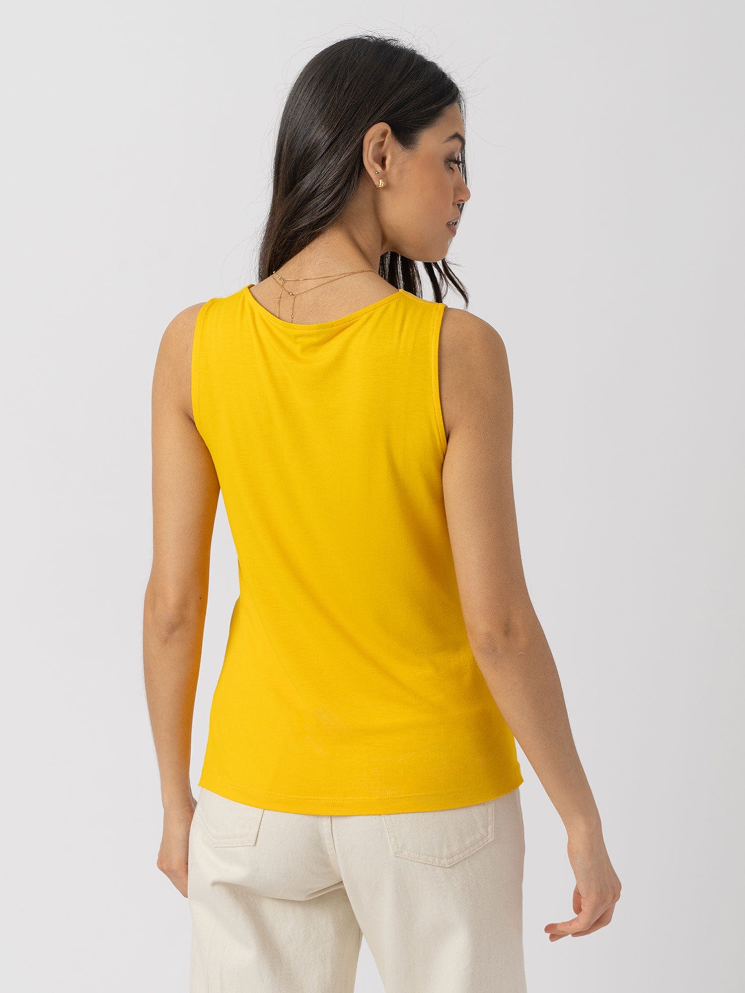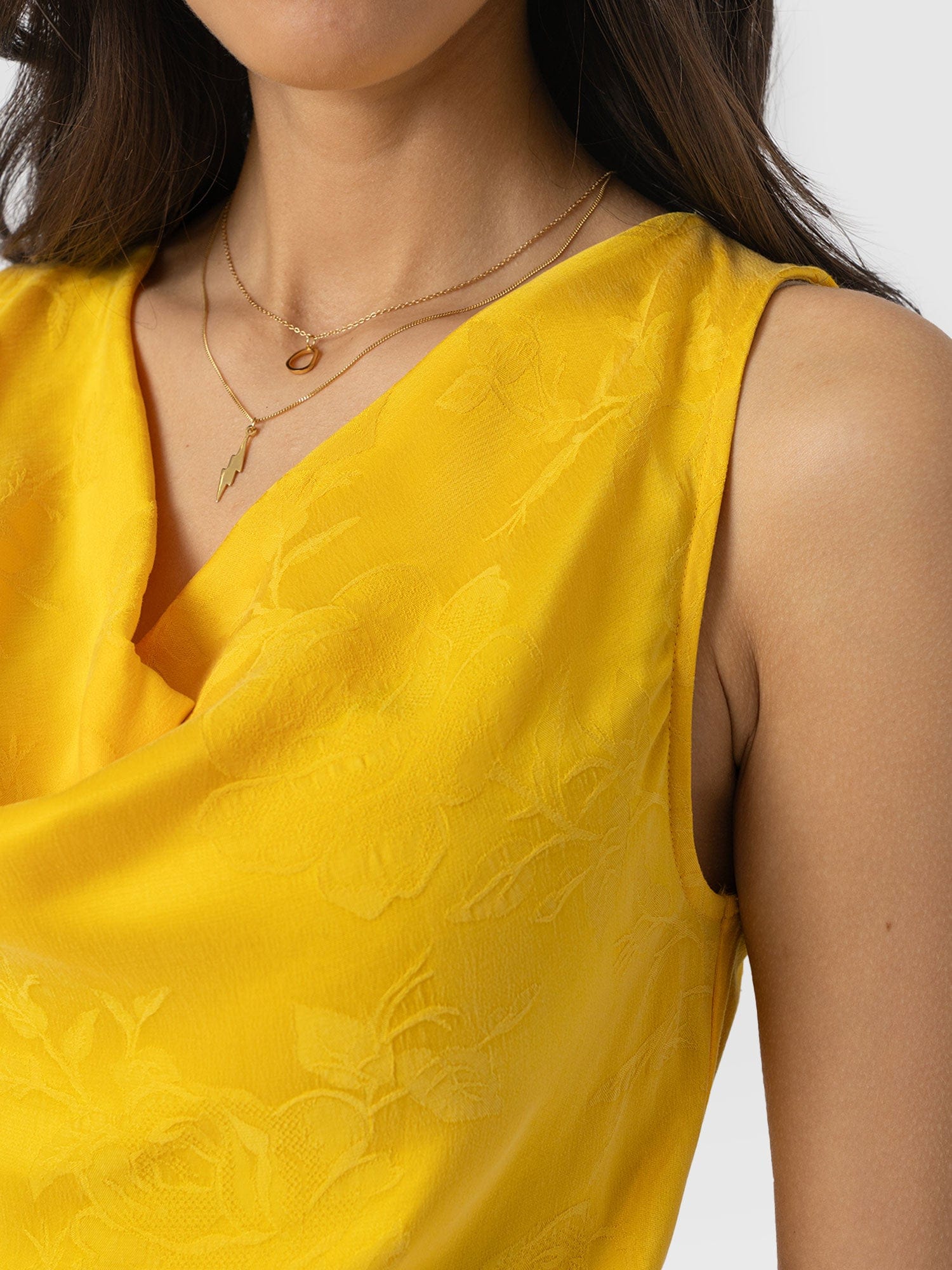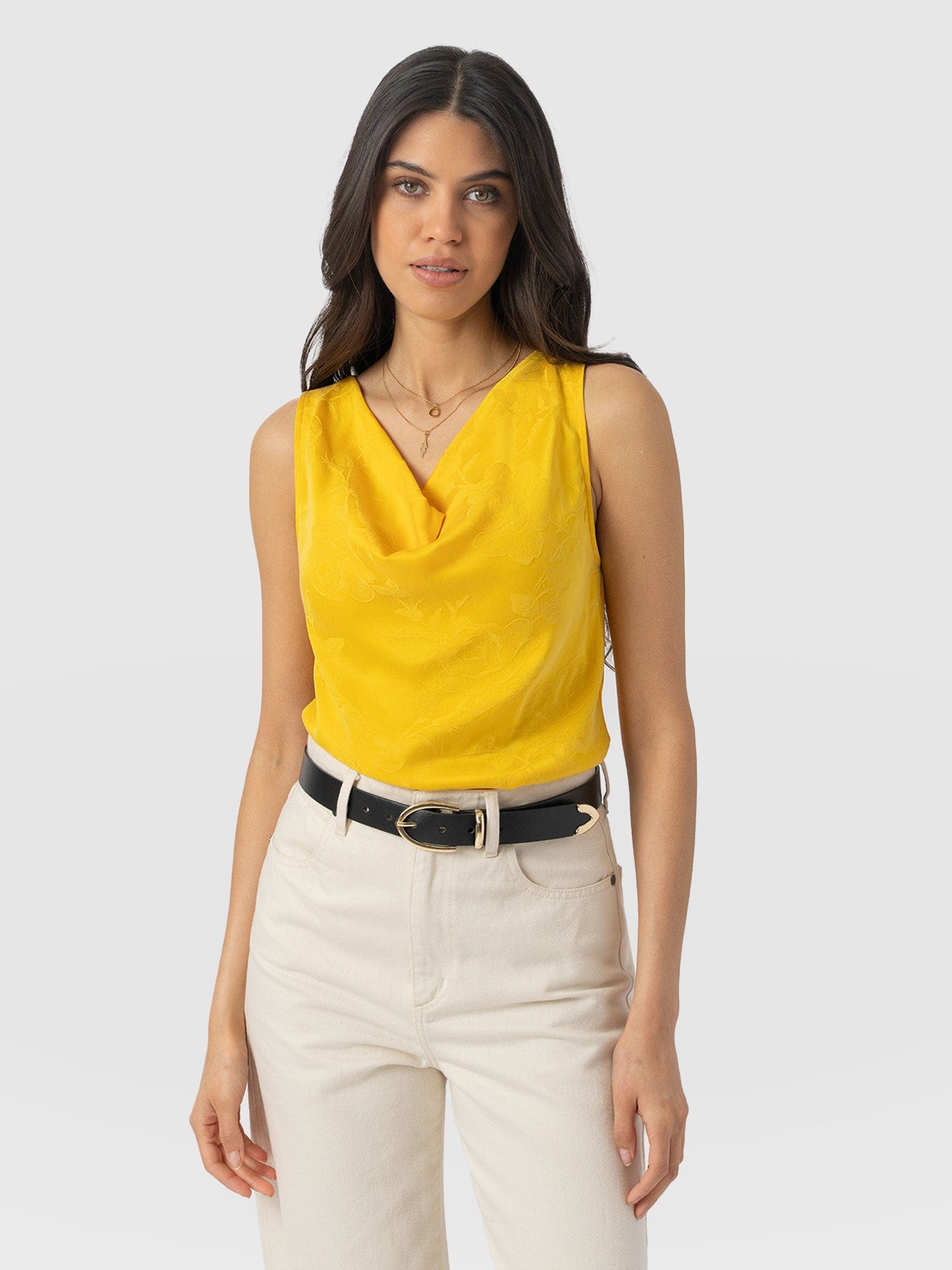 The cowl neck cami is an easy, instantly wearable style that’s a perfect alternative to the classic crew or V-neck tee. Comfortable and stylish with a silky smooth feel, we created this unique floral jacquard design with a relaxed fit using a soft and sustainable eco-viscose. Each one is handmade in our studios in Europe and finished by hand to ensure a flattering finish. Pair yours with jeans or leggings for a casual look or trousers and heels with a short leather jacket for work.