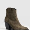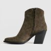 The Dallas Mid Boot in khaki is a classic ankle silhouette inspired by Western style. Each pair is handmade using soft Italian suede and finished with discrete, tonal stitching along its panelled frame. Immediately comfortable, they boast a slimline design with a pointed toe and chunky heel. Wear this playful shape to your first rodeo or your Sunday brunches with anything from dresses to skirts and jeans.
