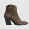 The Dallas Mid Boot in khaki is a classic ankle silhouette inspired by Western style. Each pair is handmade using soft Italian suede and finished with discrete, tonal stitching along its panelled frame. Immediately comfortable, they boast a slimline design with a pointed toe and chunky heel. Wear this playful shape to your first rodeo or your Sunday brunches with anything from dresses to skirts and jeans.