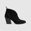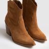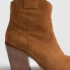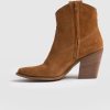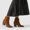 The Dallas Boot in Tan is a classic ankle boot with a western style. Each pair is hand made with a soft suede and finished off with discrete stitching. Immediately comfortable as a slimline ankle boot with pointed toe and chunky heel, this on trend shape works well with anything from dresses, to skirts or jeans.