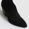 Welcome a bit of Western style into your wardrobe with the Dallas studded ankle boot. Made with soft suede and finished off with mini gold studs to accent the western inspired style. A slimline ankle boot with pointed toe and chunky heel, this on trend shape works well with anything from dresses, to skirts or jeans.