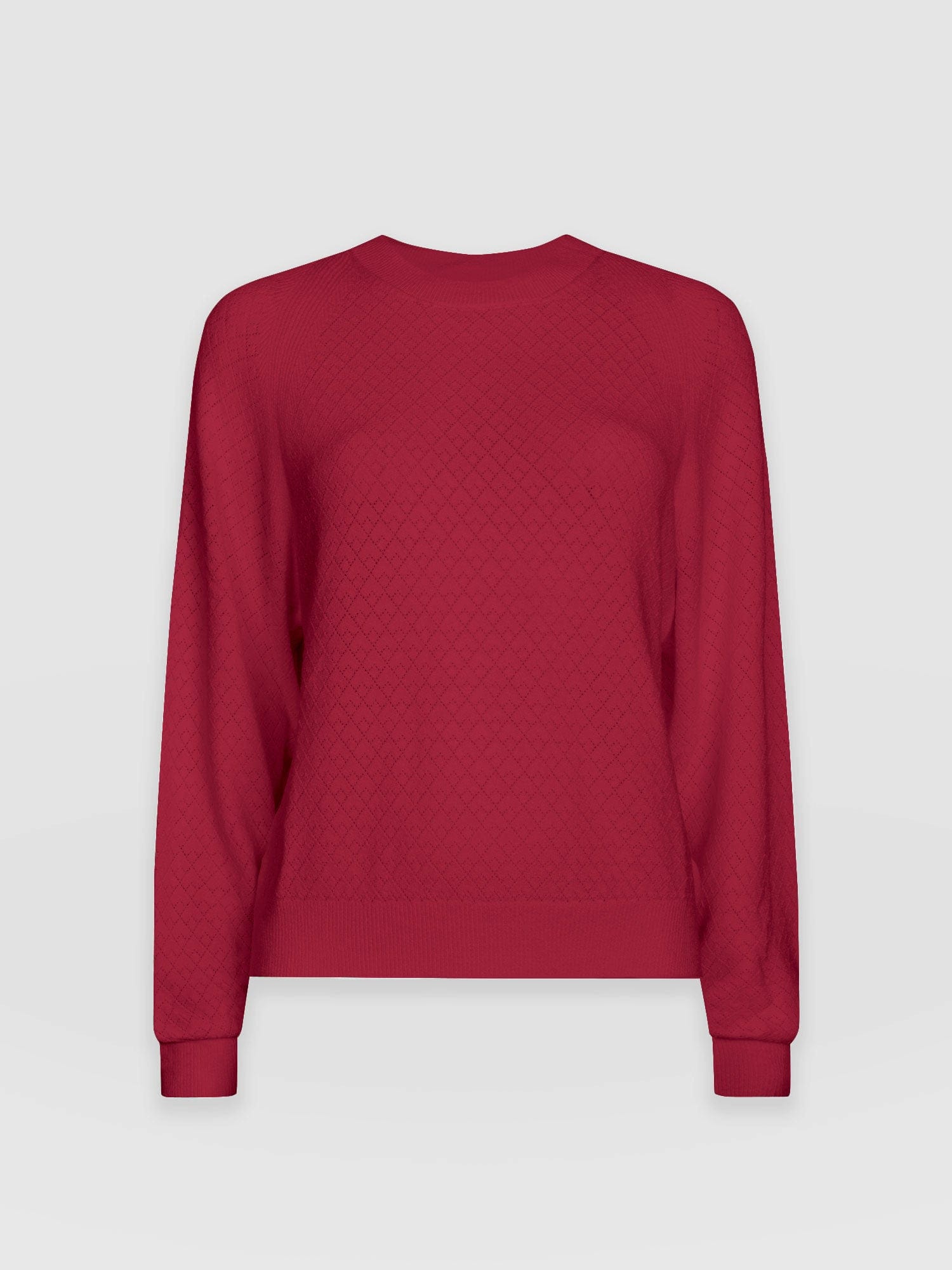 A beautiful, lightweight knitted sweater in Deep Pink with a diamond lace hole detail across its entire frame. We designed this style to have a slimmer fit and topped it with a ribbed collar and long sleeves. Instantly comfortable and made with a soft and smooth eco-viscose fabric called Ecovero™, it’s handmade in our studios in Europe and finished with discrete, tonal stitching. Wear it for work with pants or with jeans for a more casual look on a weekend.