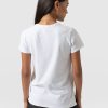 An essential crew neck t-shirt style in white, handmade with the softest organic cotton and a comfortable, relaxed fit. We make these in our studios in Europe with a certified, organic cotton that’s soft and sustainable. We added side slits for easy french tucks and a lengthened, more flattering fit. Perfect for layering and easy to wear for work, at home or on weekends.