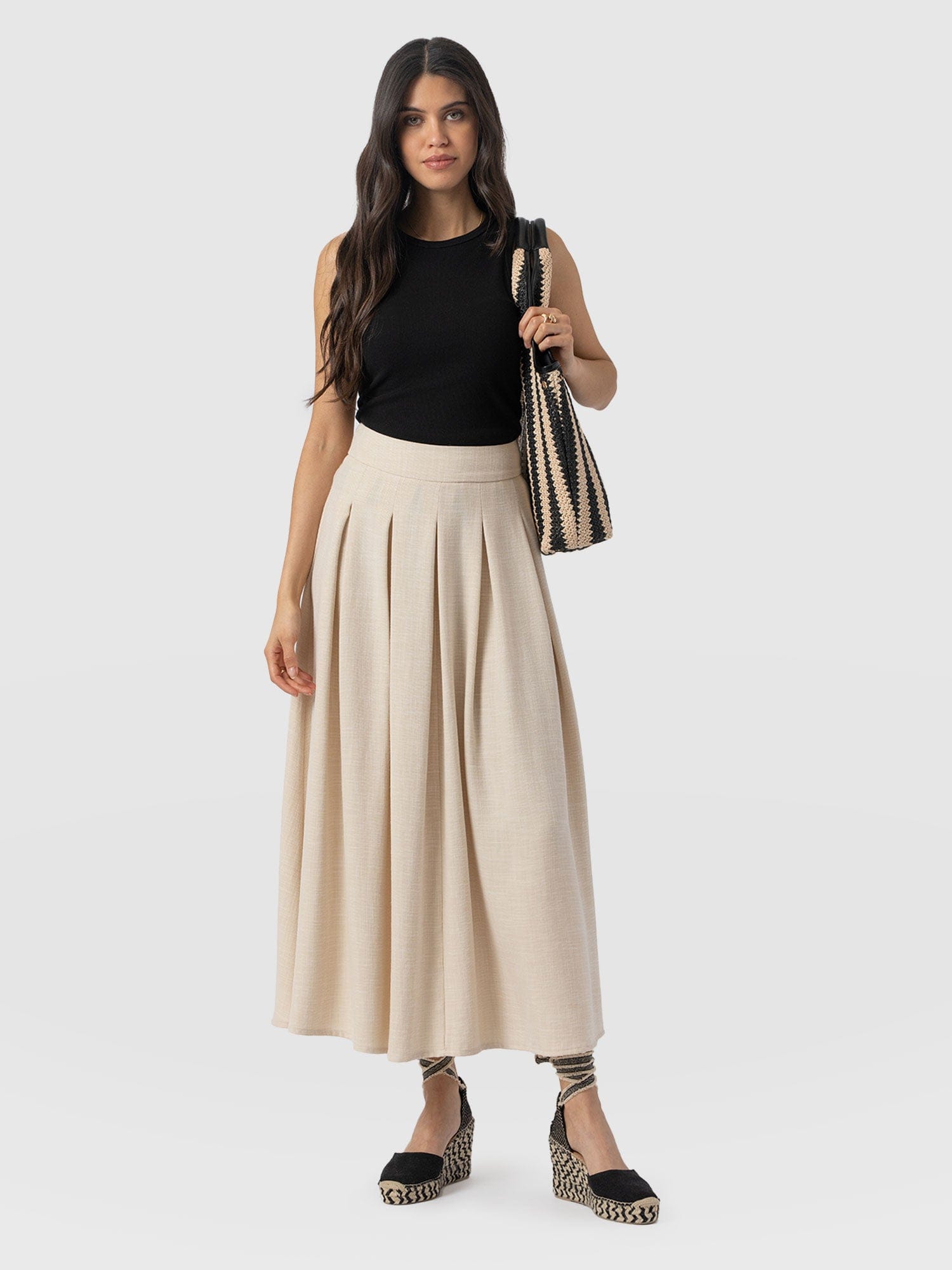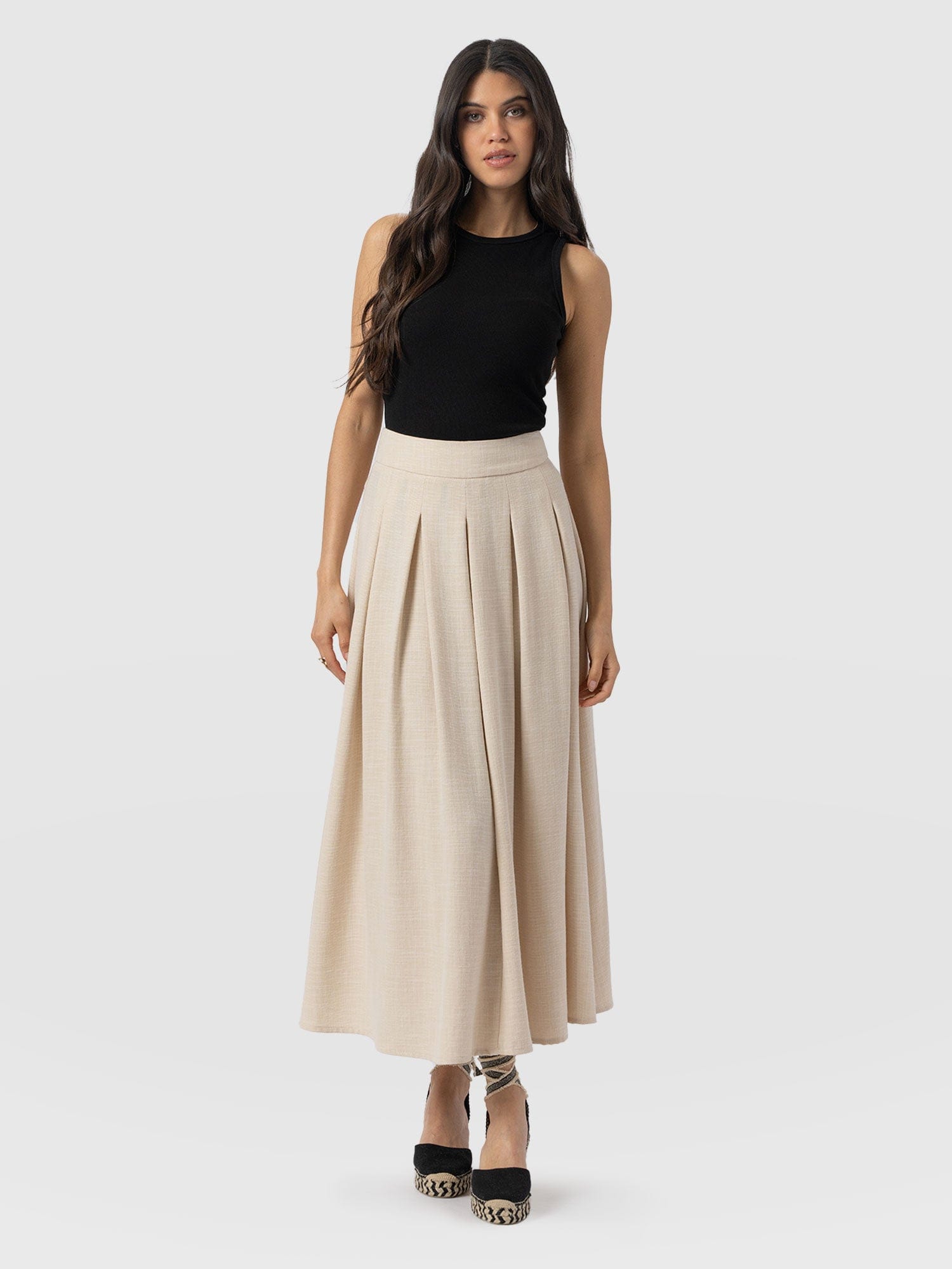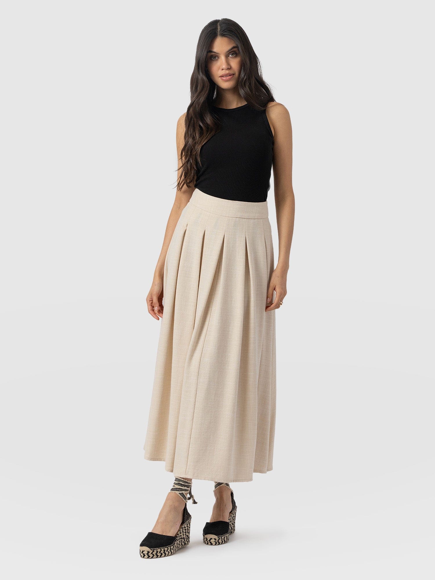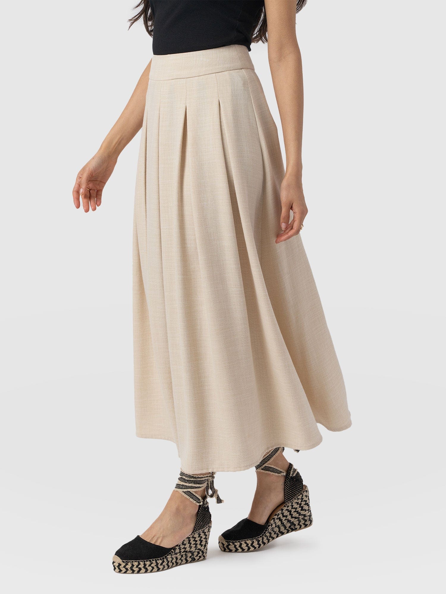 Saint + Sofia Women’s Eliza Pleated Skirt – Cream | Cream