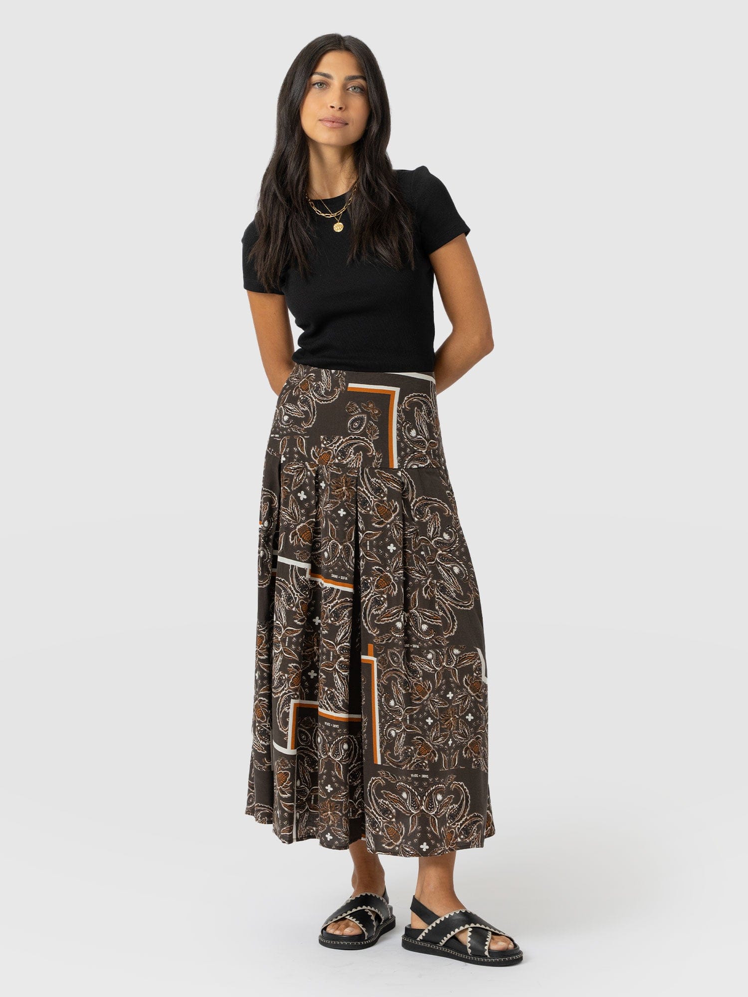 Saint + Sofia Women’s Everly Pleated Skirt – Brown Paisley | Brown Paisley