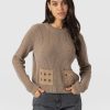 This season, we delved into the archives to reintroduce a classic. The rib knit sweater returns with a new metallic edge in the form of silver eyelets that decorate leather patch pockets at the front. Each pull-over design is handmade in Europe by artisans who use a sumptuously smooth wool and cashmere blend to create a chunky rib finish. Pair this crew-neck piece with the Etta Layered Skirt or Langley satin pants – whatever style suits you.