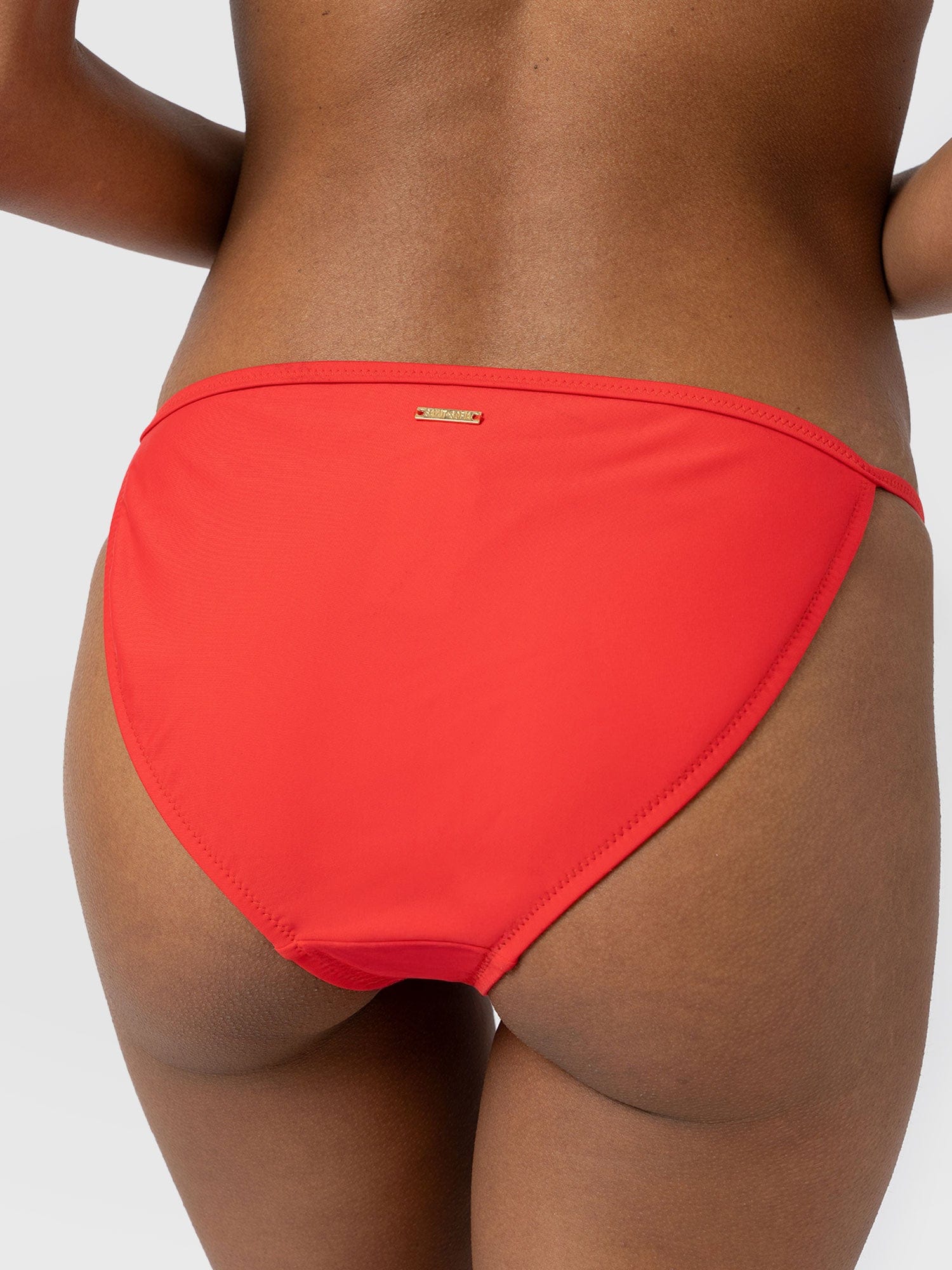 Low-rise bikini bottoms with an adjustable fit, the Faye Bikini Bottom in Red is perfect for guaranteeing all-day comfort as you wade waters this season. It’s handmade from a luxe Italian material that offers built-in UV protection. At the sides, slim straps feature metal adjusters to help you resize to the best fit. Wear yours with the Riley Cross Front Tankini Top to complete the look.