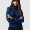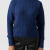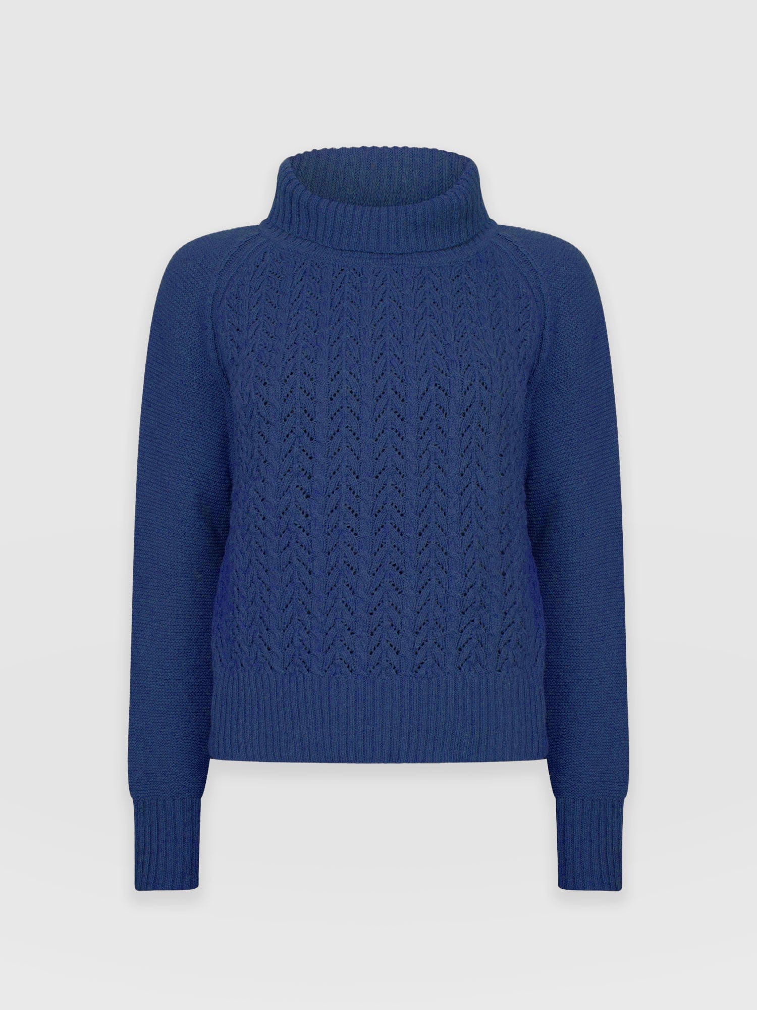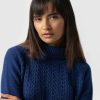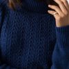 A beautiful cable sweater in blue with a relaxed, semi-fitted silhouette that has a soft and smooth (not scratchy) hand feel. Made with an Italian warming wool blend and designed with a delicate cable and garter stitch. Each style is designed in our London studios and made by hand in Europe in small numbers. Easy to care for and machine washable on a delicate setting. Wear over a vest or t-shirt and pair with jeans, pants or leggings for a smart casual look.