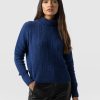 A beautiful cable sweater in blue with a relaxed, semi-fitted silhouette that has a soft and smooth (not scratchy) hand feel. Made with an Italian warming wool blend and designed with a delicate cable and garter stitch. Each style is designed in our London studios and made by hand in Europe in small numbers. Easy to care for and machine washable on a delicate setting. Wear over a vest or t-shirt and pair with jeans, pants or leggings for a smart casual look.
