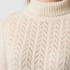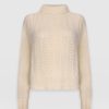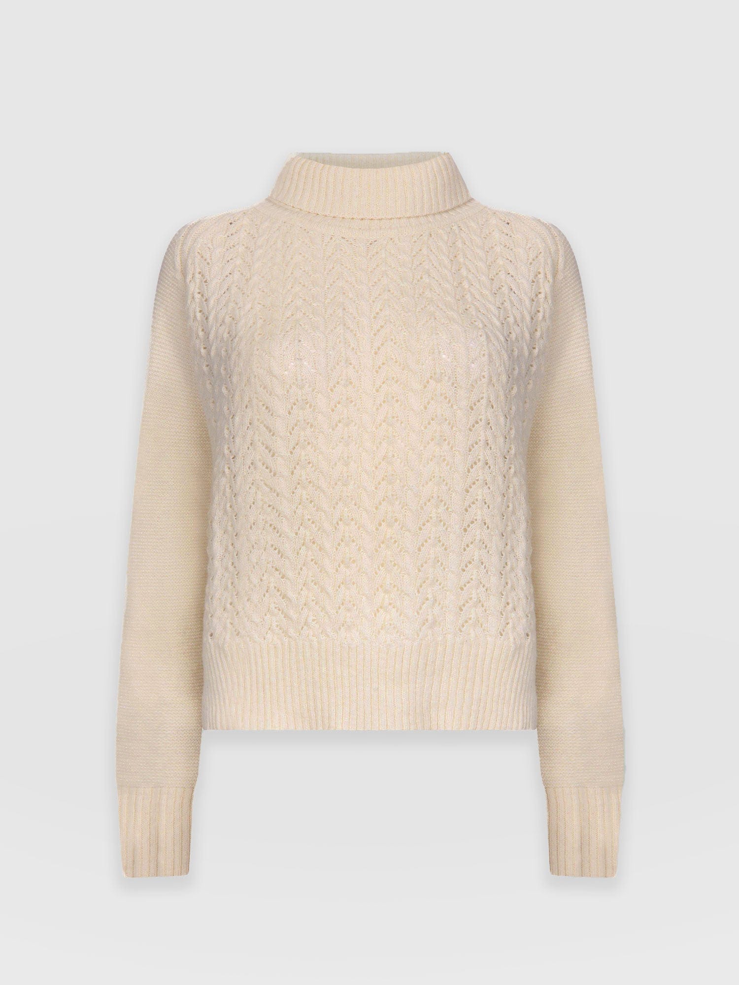 A beautiful short sweater in cream with a relaxed, loose fit that has a soft and smooth (not scratchy) hand feel. Made with a warming wool blend and designed with a delicate cable and garter stitch. Each style is designed in our London studios and made by hand in Europe in small numbers. Easy to care for and machine washable on a delicate setting. Wear over a vest or t-shirt and pair with jeans, pants or leggings for a casual look.