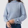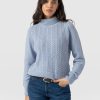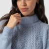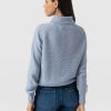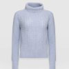 A beautiful short sweater in pale blue with a relaxed, semi-fitted silhouette that has a soft and smooth (not scratchy) hand feel. Made with a warming wool blend and designed with a delicate cable and garter stitch. Each style is designed in our London studios and made by hand in Europe in small numbers. Easy to care for and machine washable on a delicate setting. Wear over a vest or t-shirt and pair with jeans, Pants or leggings for a smart casual look.