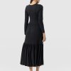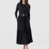 A comfortable, tiered midi dress in black with long sleeves. Made with the softest jersey for an easy look and feel for all the seasons. We designed this style with flattering tiers and used a soft and sustainable viscose fabric with a beautiful drape (and a little stretch). It has a soft and silky hand feel and a relaxed fit. Pair easily with sandals in the summer. sneakers or boots in the winter and with heels for a smarter look for work or nights out.