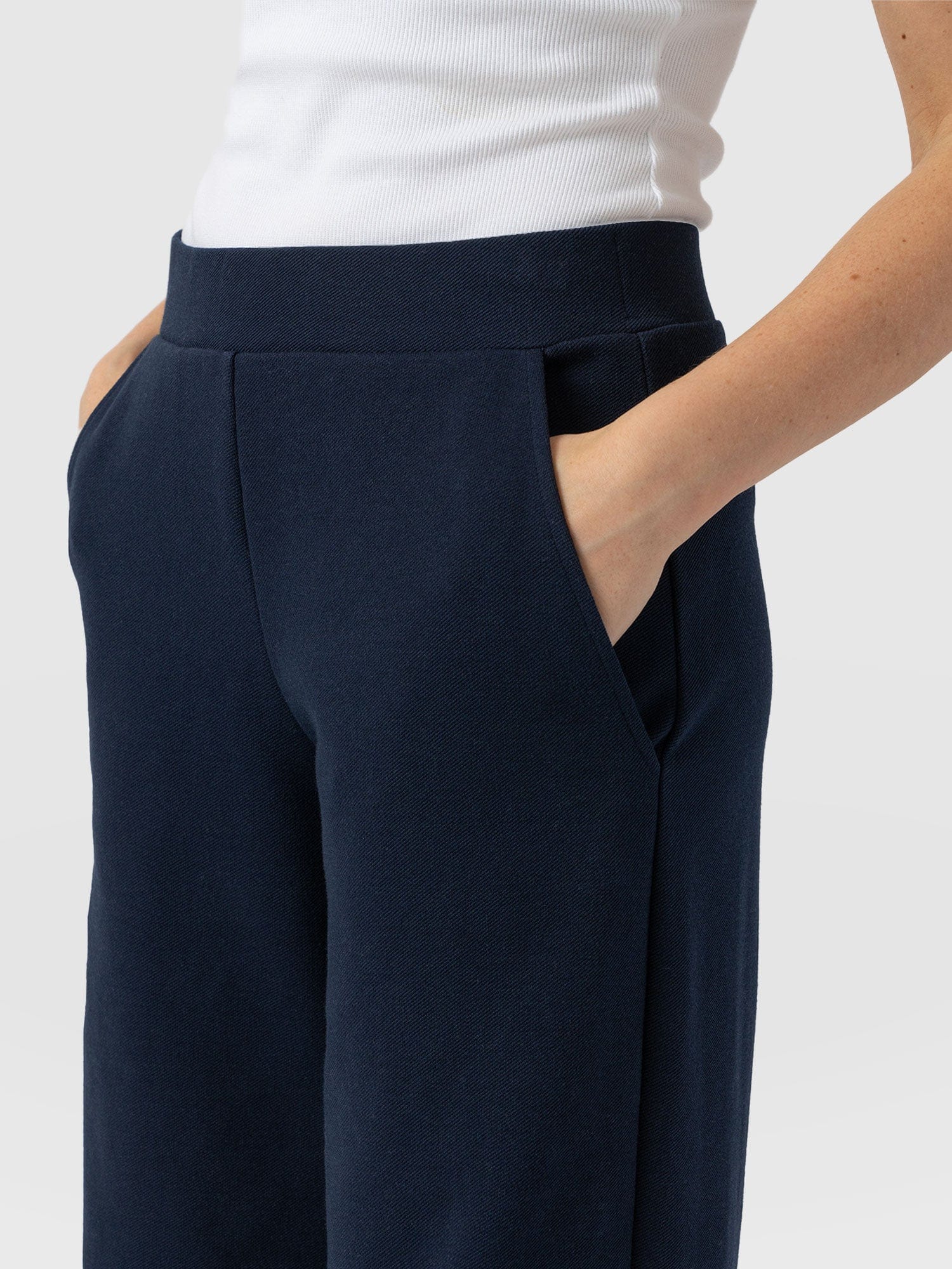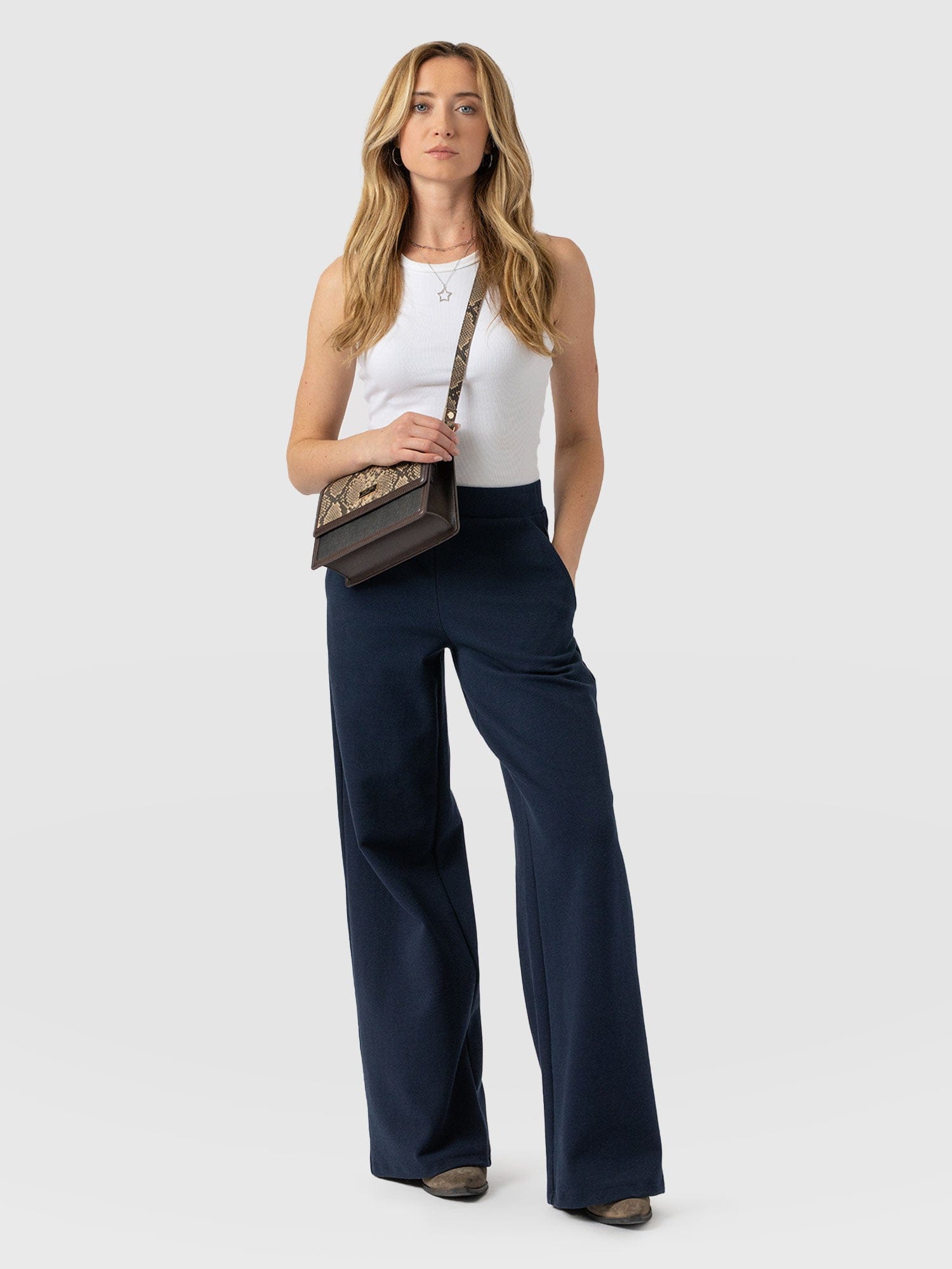 The Keller Wide Leg Pant in Navy Twill is a sleek and stylish addition to your wardrobe. These wide-leg trousers feature a tailored-esque twill texture and slant pockets for added detail, while the flat waist and elasticated finish offer a comfortable and flattering fit. Plus, the versatile hue makes them easy to pair with any top or accessory, meaning you can dress them up with heels and a blouse or keep them casual with sneakers and a T-shirt.
