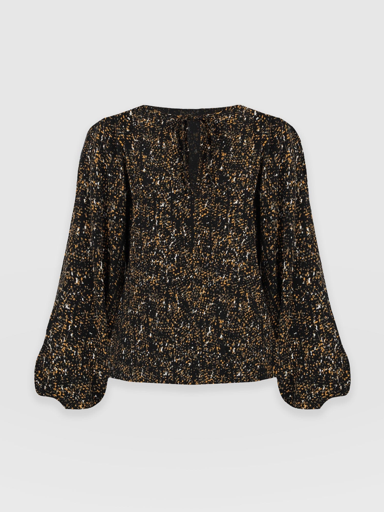 A stunning tie-front blouse in our unique Ditsy Leopard print. The Kristen top boasts long balloon sleeves and a loose, comfortable bodice that’s coated in our vibrant pattern for both comfort and style. With a keyhole cut out at the neck and a self-tying bow, it can be worn either open or closed, depending on your style. Create a polished aesthetic by pairing it with black pants and heeled boots. Or opt for something more casual with your favourite pair of jeans.