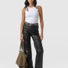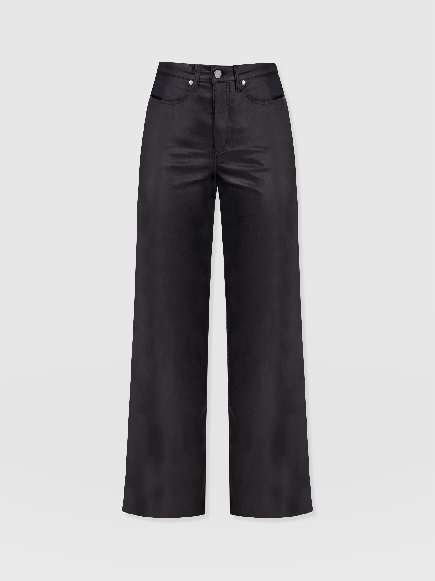 A relaxed pair of leather-look trousers, the Maeve Pant is the perfect style to create on-trend evening looks. Designed in London and handmade in Europe from Italian leather look denim fabric. They’re cut from a coated material that offers a glossy leather finish and are shaped to a wide-leg silhouette for that oversized look. At the top, a structured waistband and classic five-pocket construction work to add a tailored edge. Why not style yours with the Remy Crop Sweater in Stripe and your favourite trainers?