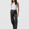 A relaxed pair of leather-look trousers, the Maeve Pant is the perfect style to create on-trend evening looks. Designed in London and handmade in Europe from Italian leather look denim fabric. They’re cut from a coated material that offers a glossy leather finish and are shaped to a wide-leg silhouette for that oversized look. At the top, a structured waistband and classic five-pocket construction work to add a tailored edge. Why not style yours with the Remy Crop Sweater in Stripe and your favourite trainers?