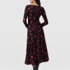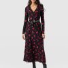 The Maggie Wrap Dress is a beautiful midi cloaked in our floral Pink Aurora print and handmade by artisans in Europe who use a soft and sustainable eco-viscose. This chic style features a skin-baring V-neckline mock wrap and a full A-line skirt. Thanks to its long sleeves, it’s perfect for styling all year round; slip yours on in the summer with trainers and in the winter with a jacket, tights, and boots.