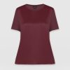 The Rayner Contrast Tee in maroon uses a beautiful blend of textures to elevate your classic crew neck tee. Handmade by artisans in Europe, this timeless design features a glossy satin front panel with a soft and smooth jersey decorating the sleeves and back panel. It’s cut to a relaxed fit for easy wear and looks chic when styled with the Bowie Jeans and your favourite sneakers.