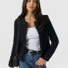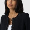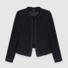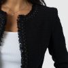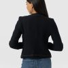 A beautiful, tailored jacket for a smart, sophisticated look in black bouclé fabric. Named after Bessie Rayner Parkes who was a poet, journalist and prominent campaigner for women’s rights in the Victorian times. Each jacket is designed in our London studios and handmade in Europe with a panel detailed bouclé fabric that’s soft and sustainable. We finish each style by hand with a stylish, raw edge fringe and a black bouclé fabrication. Comfortable and semi-fitted, wear it for work with matching our Cambridge Short or pair with jeans on a weekend.