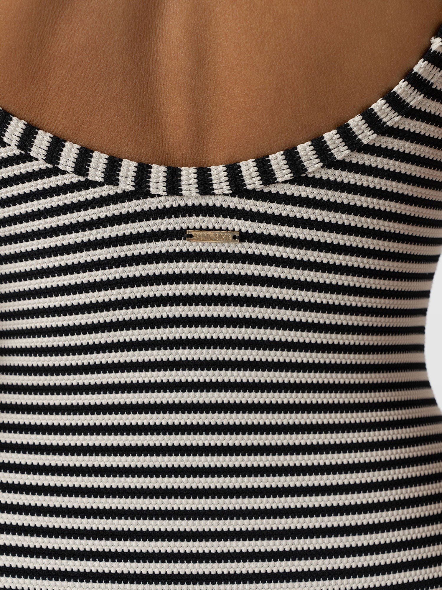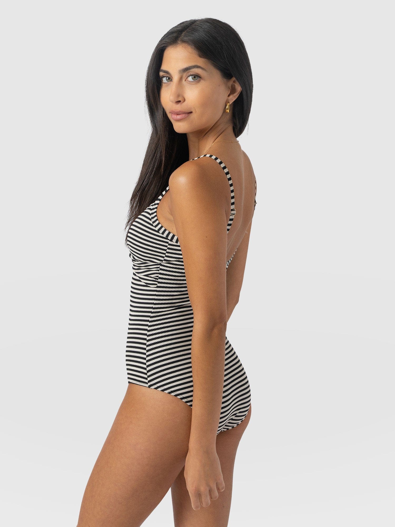 Dive into summer with the Riley Cross Front Swimsuit in Stripe. This chic one-piece is made from a luxe Italian fabric with built-in UV protection and a power mesh front panel for added support. It’s also stitched with a cross-over bust area to help sculpt your figure, while adjustable straps provide the perfect fit.