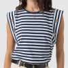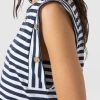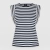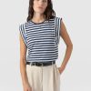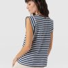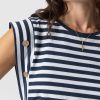 This nautical-inspired striped t-shirt in navy stripe features a relaxed fit and standard length, with added sophistication from the brushed gold button detail on the sleeves. Pair it with the Finsbury Pant or Adjustable Wide Leg Jeans and your favourite sneakers for a comfortable and trendy look.