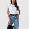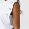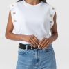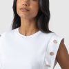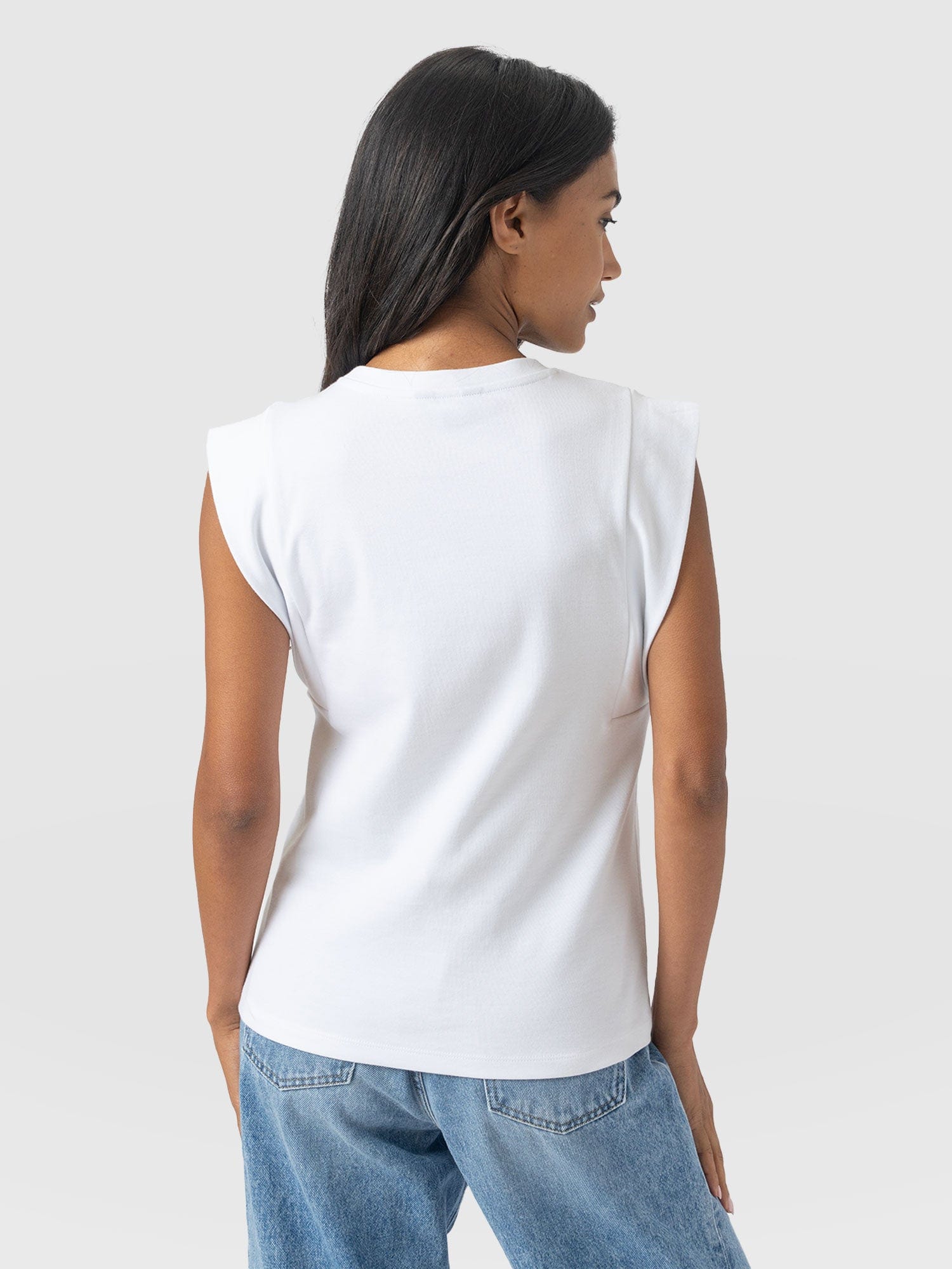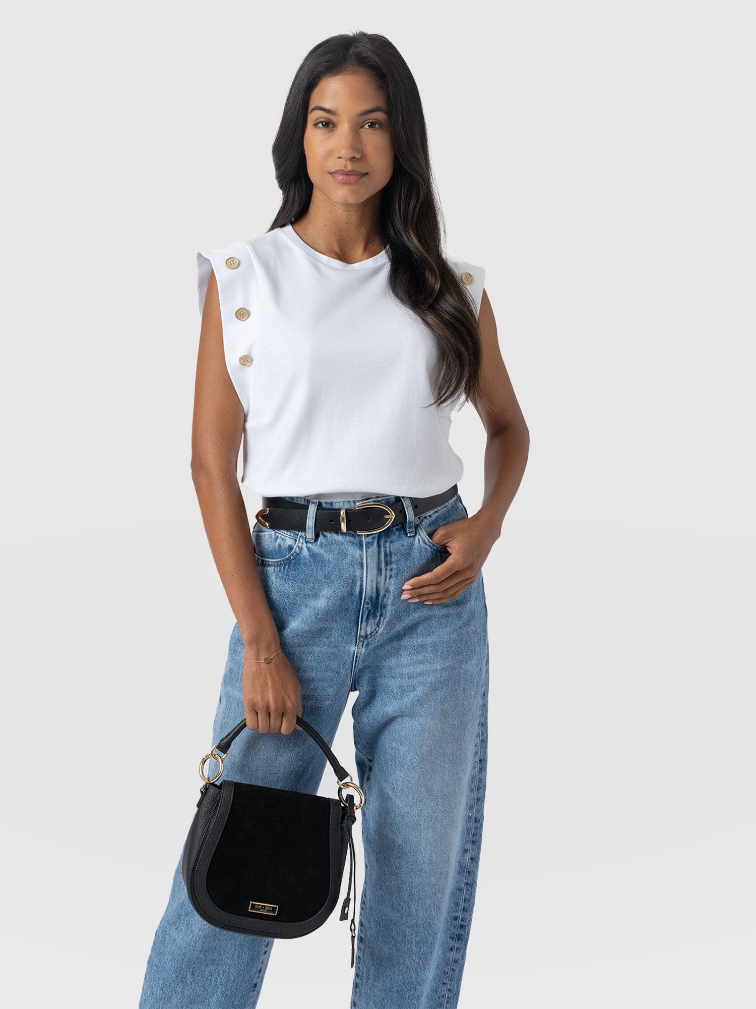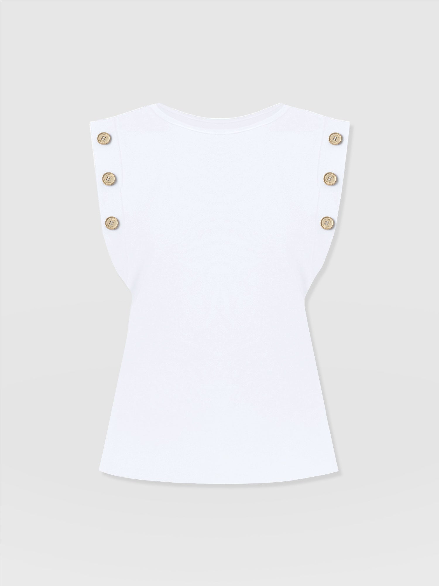 A staple T-shirt to add to your everyday collection, The Rowan Tee is a casual design made from soft and gentle cotton. It’s shaped to a relaxed fit with a sleeveless frame to add some edge to the classic crew-neck silhouette. At the sleeves, gold buttons trace up the sides for a sophisticated touch. Pair yours with the Finsbury Pant or Wide Leg Jeans and your favourite trainers for a comfortable and always-on-trend look.