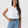 A staple T-shirt to add to your everyday collection, The Rowan Tee is a casual design made from soft and gentle cotton. It’s shaped to a relaxed fit with a sleeveless frame to add some edge to the classic crew-neck silhouette. At the sleeves, gold buttons trace up the sides for a sophisticated touch. Pair yours with the Finsbury Pant or Wide Leg Jeans and your favourite trainers for a comfortable and always-on-trend look.