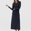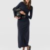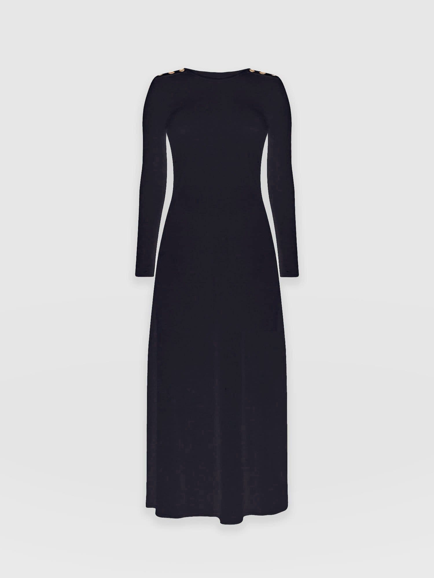 A comfortable maxi dress in navy, made with the softest organic cotton and beautiful gold button detail. Designed with a figure hugging shape and with a full length. We make these individually by hand in our studios in Europe to ensure the perfect fit and feel that’s true to size. We use a soft, smooth organic cotton with a little added stretch. Pair with sandals, slides or sneakers for a casual look on weekends or with boots / heels for something a bit more formal.