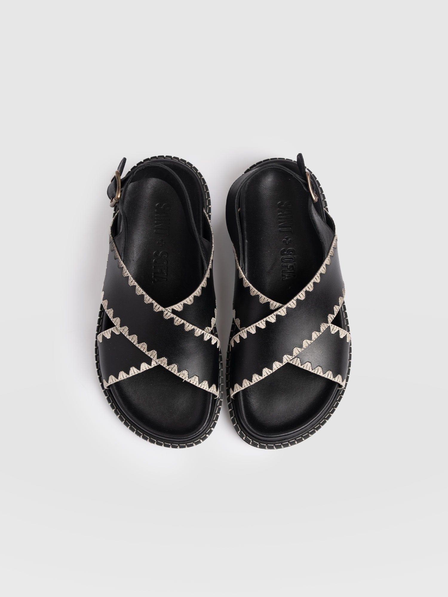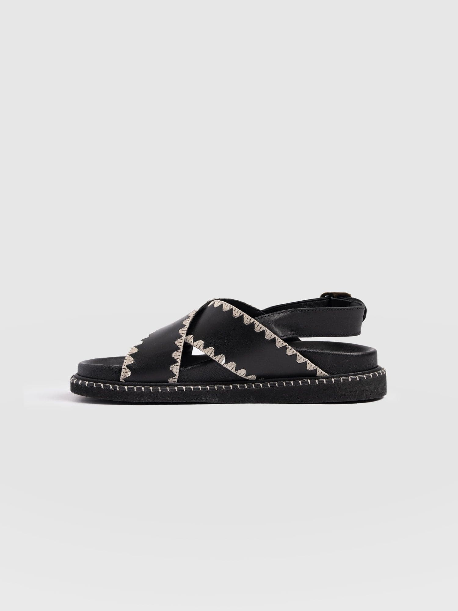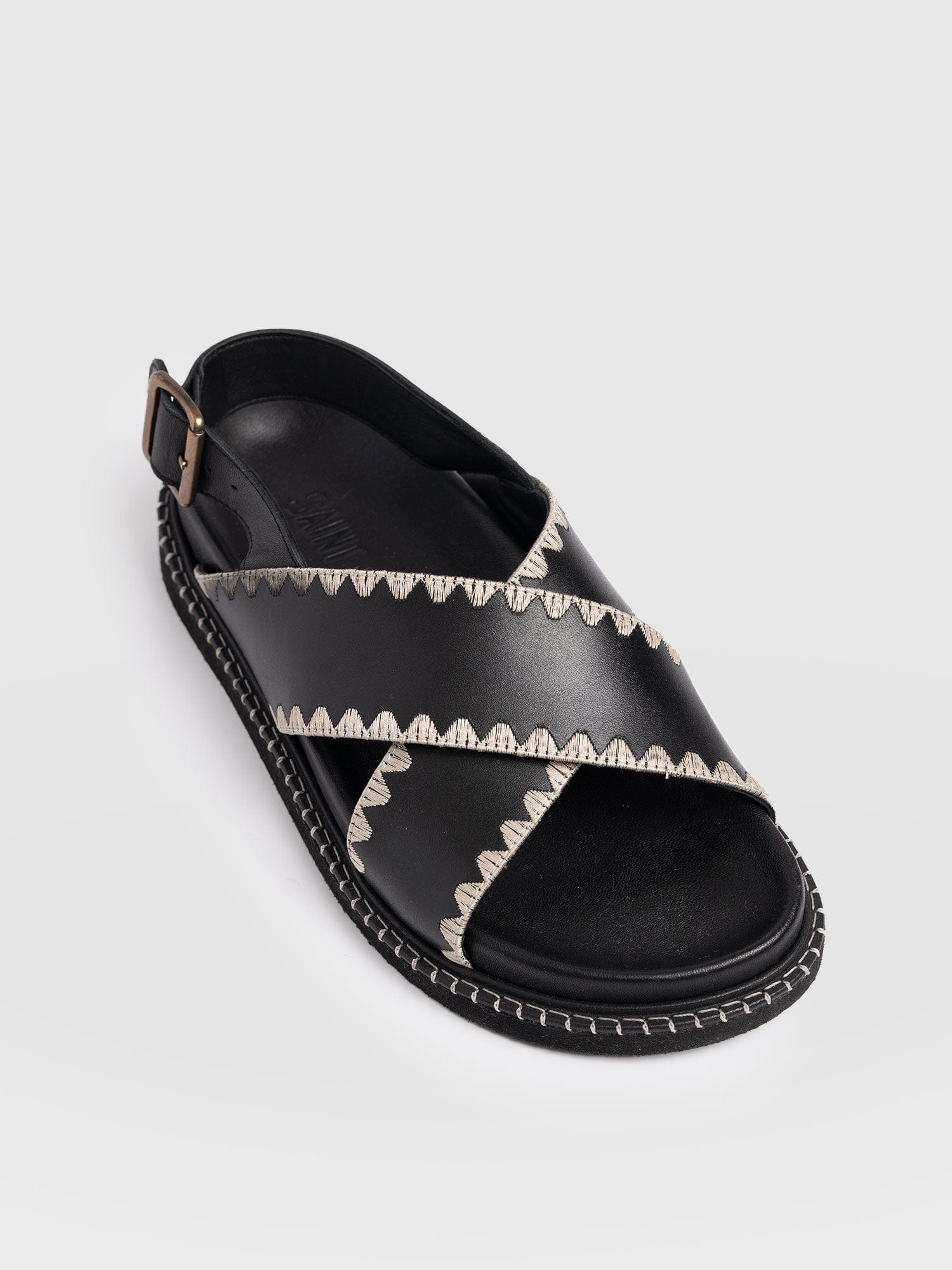 Meet the Bonnie Cross Over Sandals in Black. This laid-back style is designed with coastal towns and sun-soaked cities in mind. Handmade by our skilled artisans using Portuguese leather, they’re shaped to a classic round-toe silhouette and feature cross-over raffia straps with a chunky sling-back fastening for all-day comfort. Wear yours with skirts, dresses, or trousers.