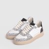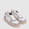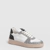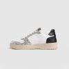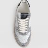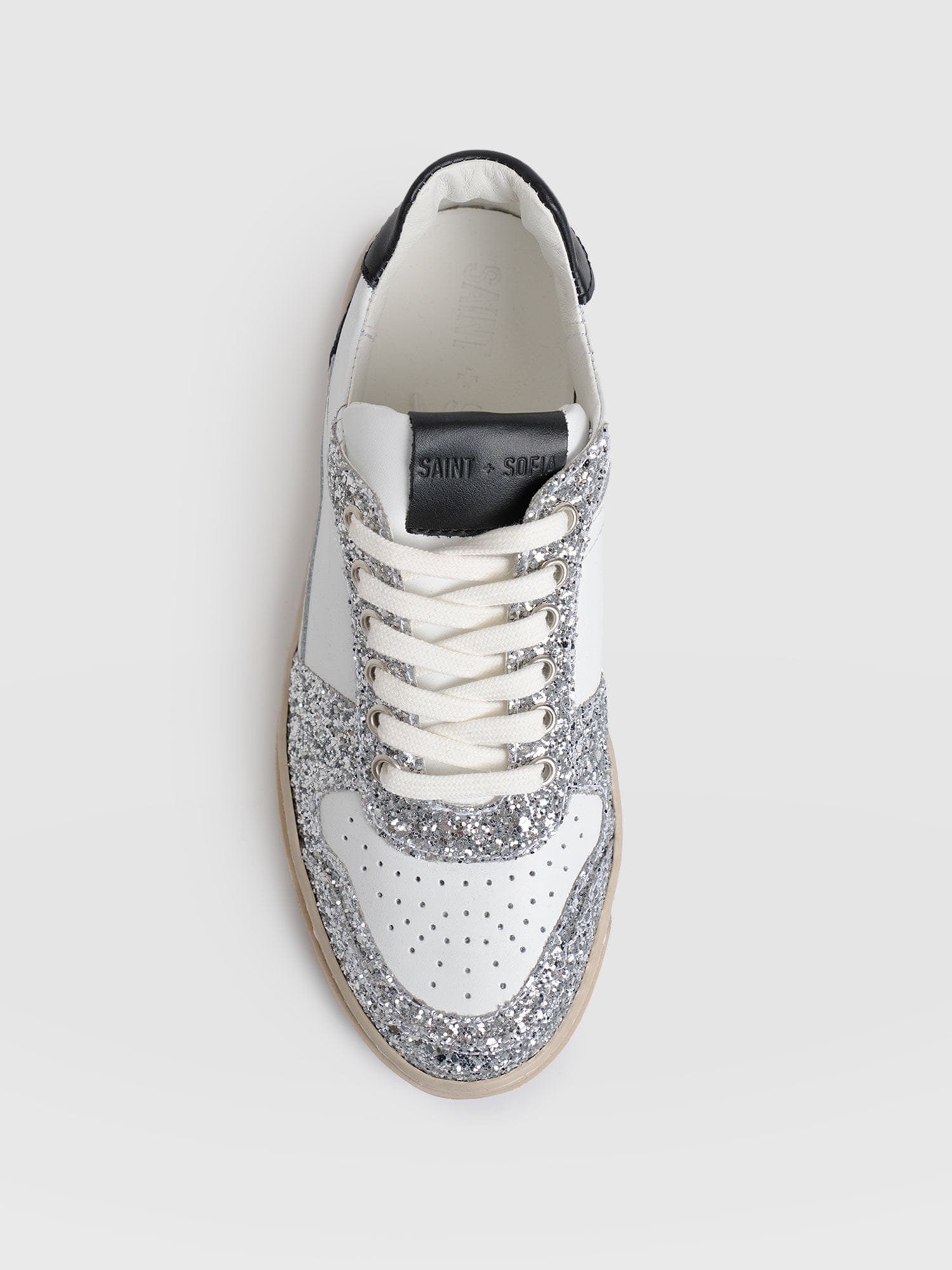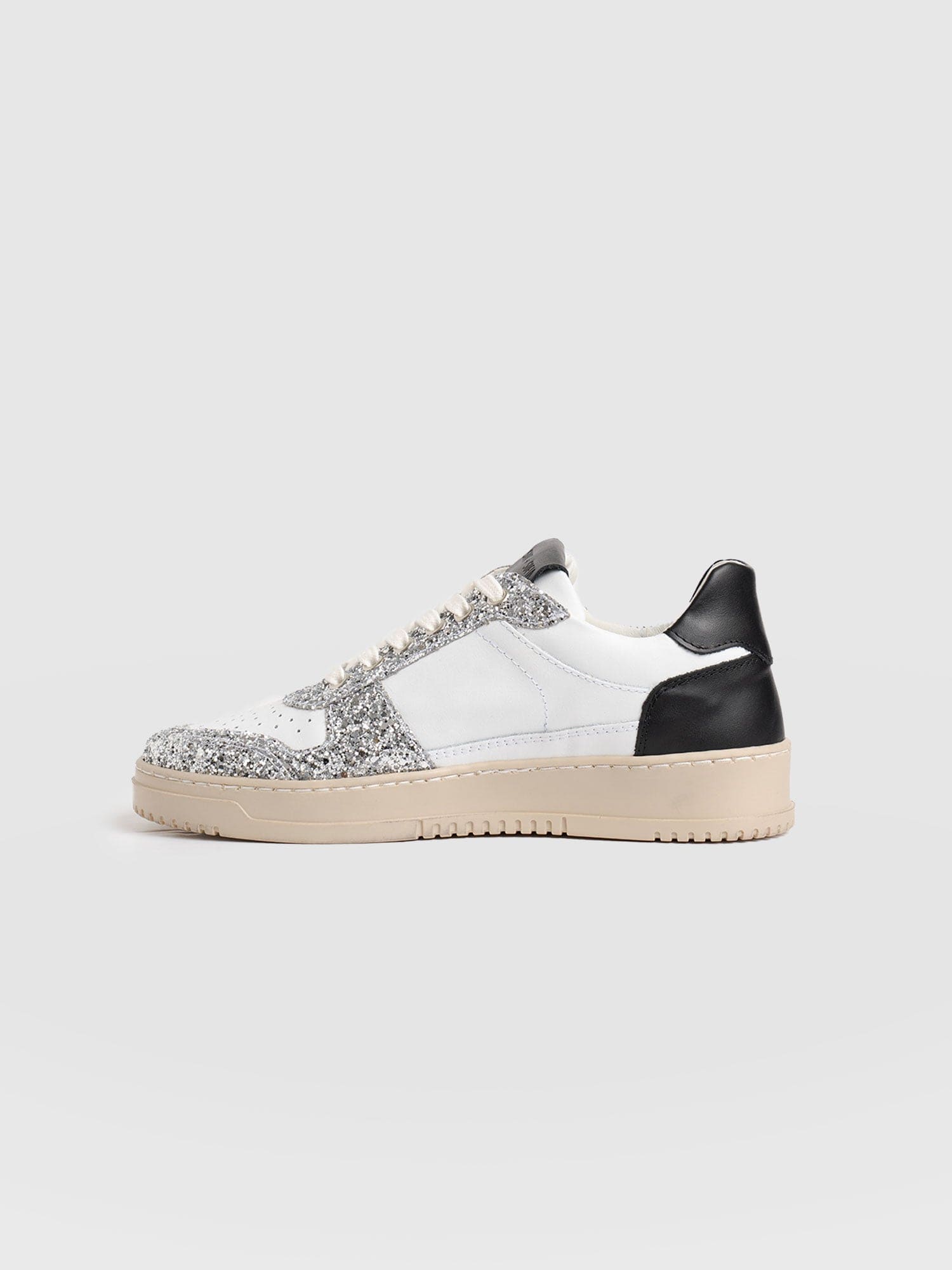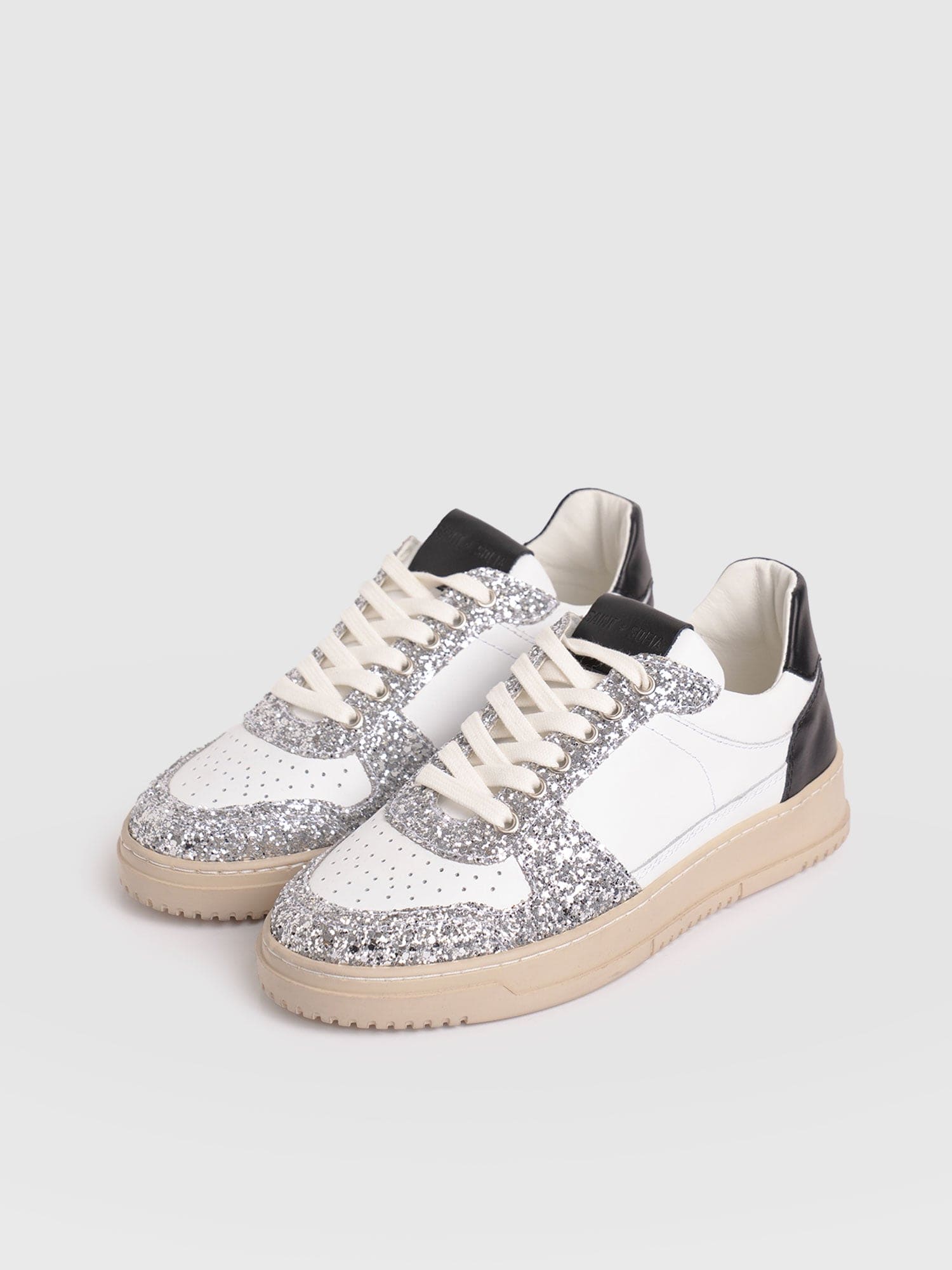 Taking the rough-and-ready skater sneaker and blending it with a glimmering edge, we introduce the Onyx Trainer. This lace-up design is handmade from smooth leather and shaped to a classic round toe design with a vintage-inspired sole. At the top, silver glitter panels bring sparkle to your look while the branded tongue tab adds tailored sophistication.
