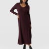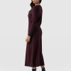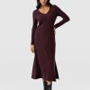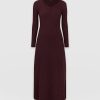 Handmade from a beautifully soft knit, the Sienna Dress in burgundy features a gentle V-neckline, long sleeves, and a midi-length skirt that falls to soft pleats. Its warming aesthetic is only elevated further by a ribbed texture that creates a relaxed finish. As for the fit, this style is designed to sculpt your figure and hug close to your frame while the added elastane provides a comfortable stretch.