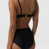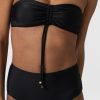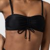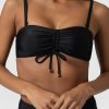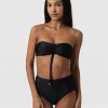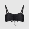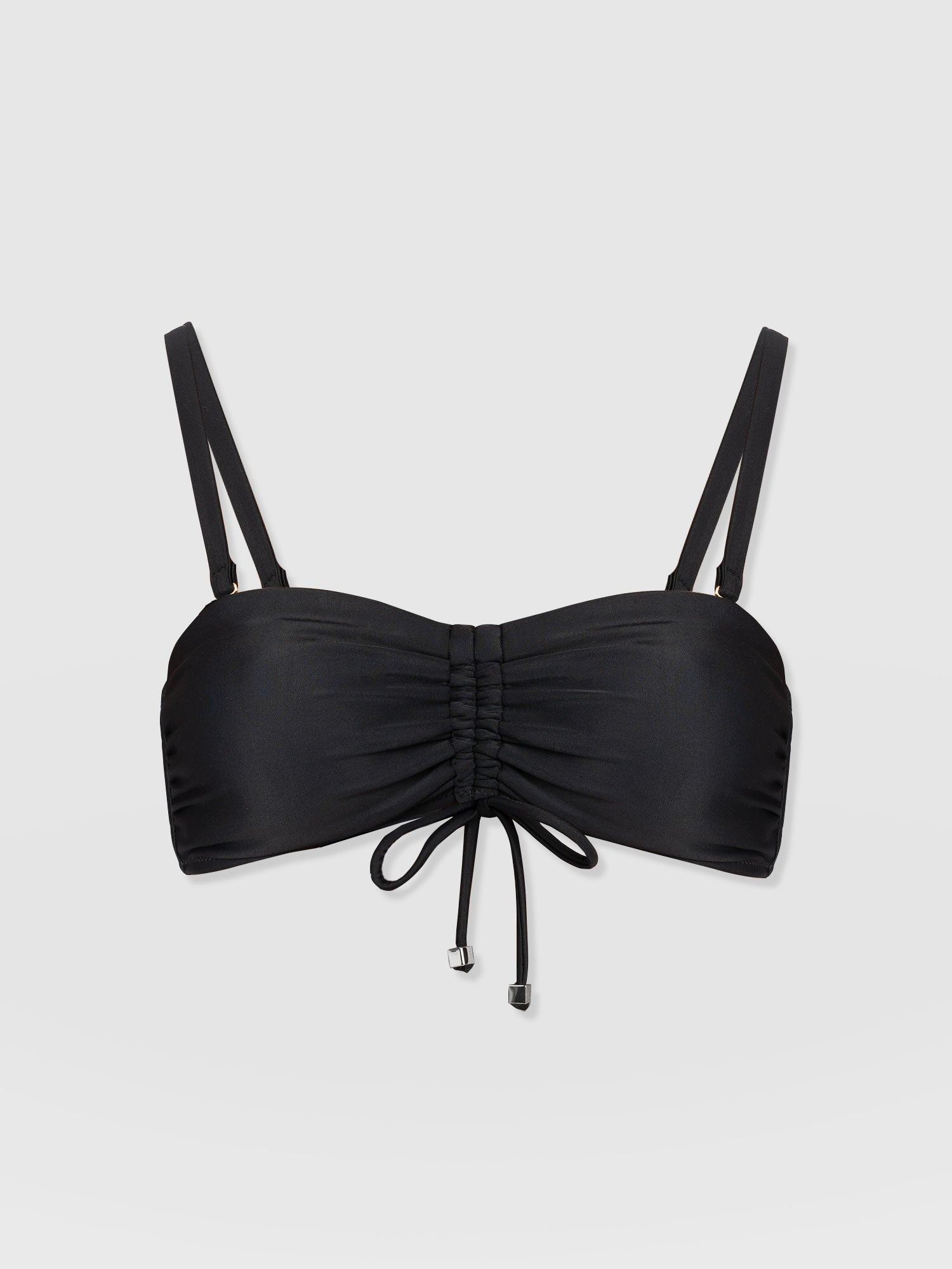 Made from recycled polyamide and infused with a hint of stretch, the Skye bikini top in black is designed with your next summer holiday in mind. It’s shaped to a bandeau silhouette with detachable shoulder straps that allow you to switch between styles. The ruched drawcord at the centre means this design can create a shape that’s comfortable for any figure. And the glimmering gold-toned hardware details will leave you glimmering poolside.