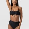 Made from recycled polyamide and infused with a hint of stretch, the Skye bikini top in black is designed with your next summer holiday in mind. It’s shaped to a bandeau silhouette with detachable shoulder straps that allow you to switch between styles. The ruched drawcord at the centre means this design can create a shape that’s comfortable for any figure. And the glimmering gold-toned hardware details will leave you glimmering poolside.