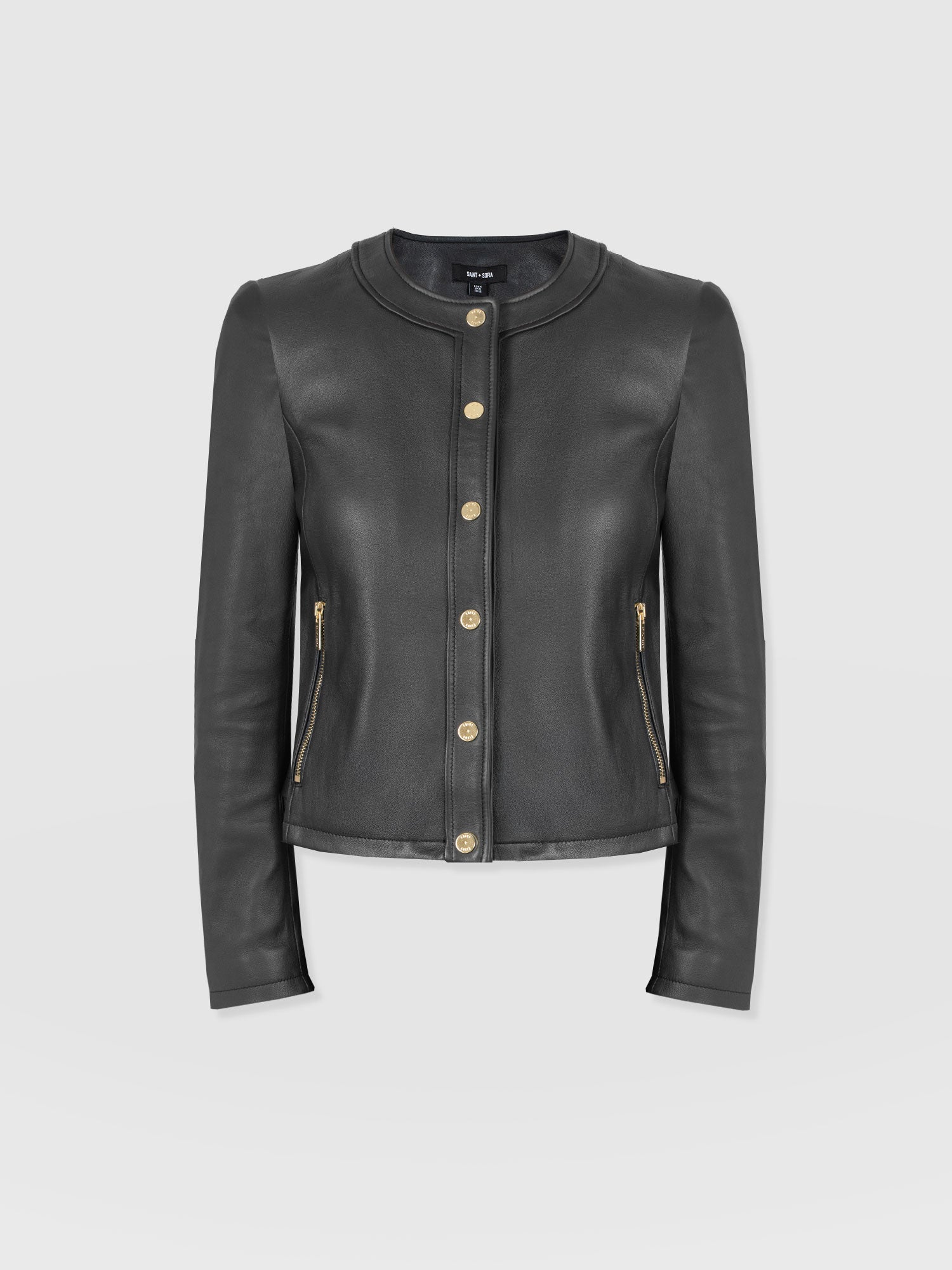 Tailoring meets leather with our new Skye Jacket. This easy-to-wear style is inspired by our best-selling Ashby Jacket and features the same collarless neckline and slim-fitting construction with a more contemporary Nappa leather finish. At the front, a button-up fastening adds a touch of interest while two slip pockets provide practical storage. Wear yours with our Keller Pant to complete the look.